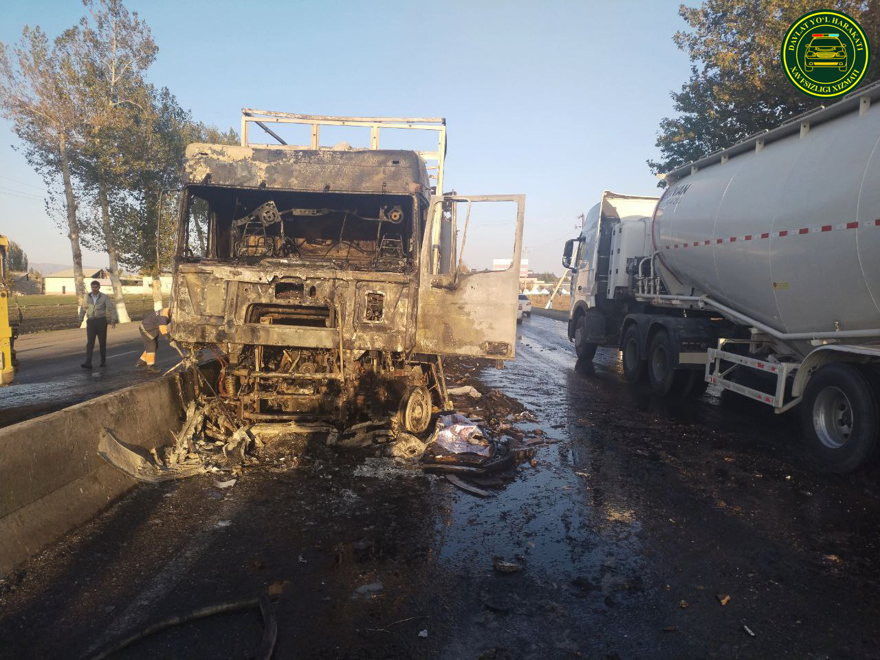 Toʻqnashuv natijasida yuk avtomobilida yongʻin yuzaga kelgan.