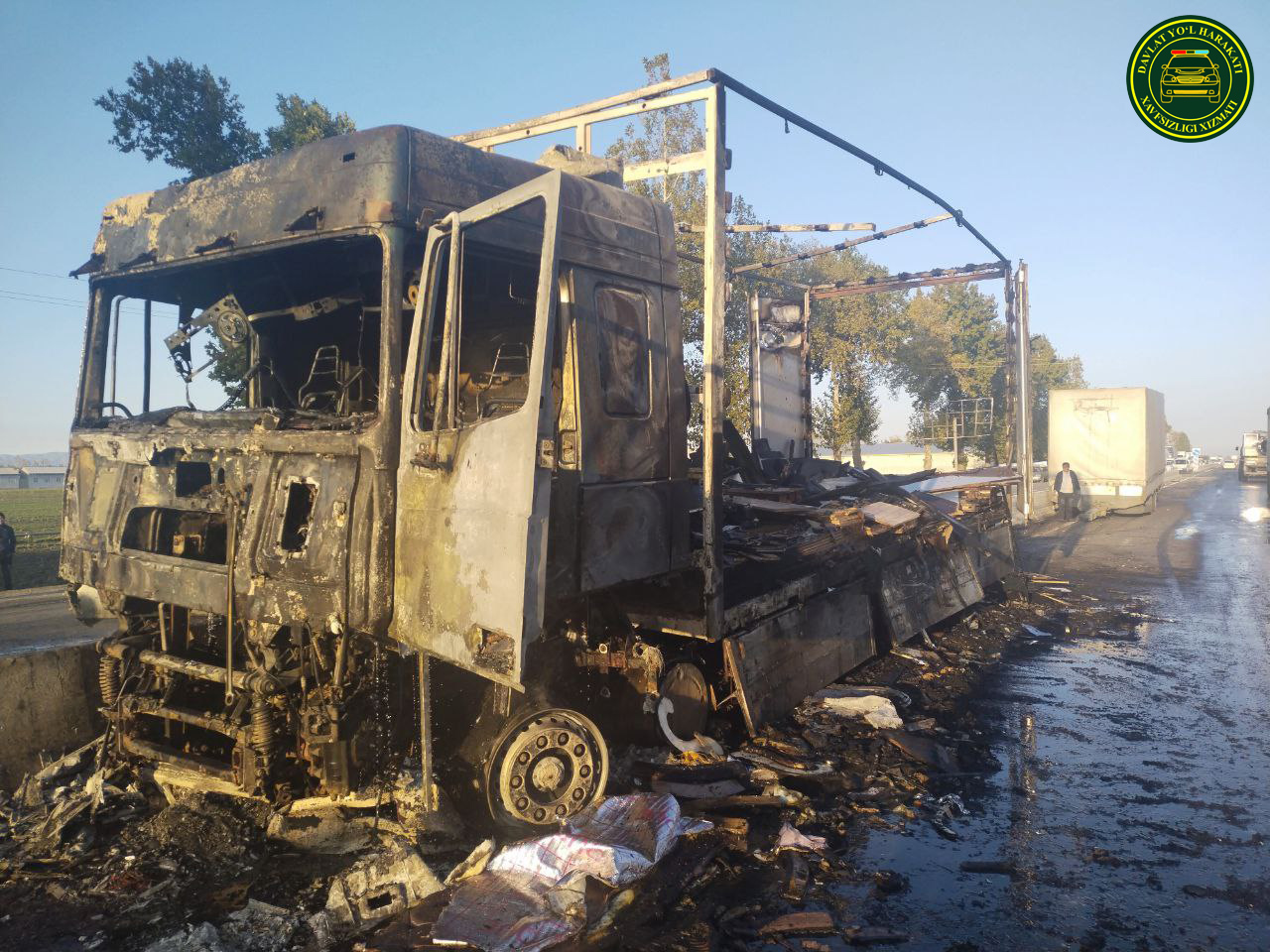 Dastlabki maʼlumotlarga koʻra, bugun, 2022-yil 31-oktabr kuni soat 15:30 larda Samarqand viloyati, Jomboy tumani hududidan oʻtuvchi M-39 “Toshkent-Samarqand” avtomobil yoʻlining 1071-kilometrida “DAF” rusumli yuk avtomobilining old chap tomon shinasi havo qoʻyib yuborishi oqibatida haydovchi boshqaruvni yoʻqotgan va oldinda, ortga qayrilib olish manyovrini bajarayotgan haydovchi boshqaruvidagi “Lada Largus” rusumli avtomobilga toʻqnashgan.