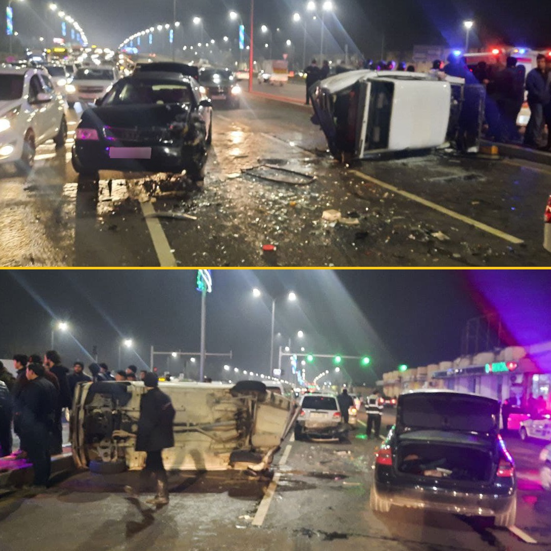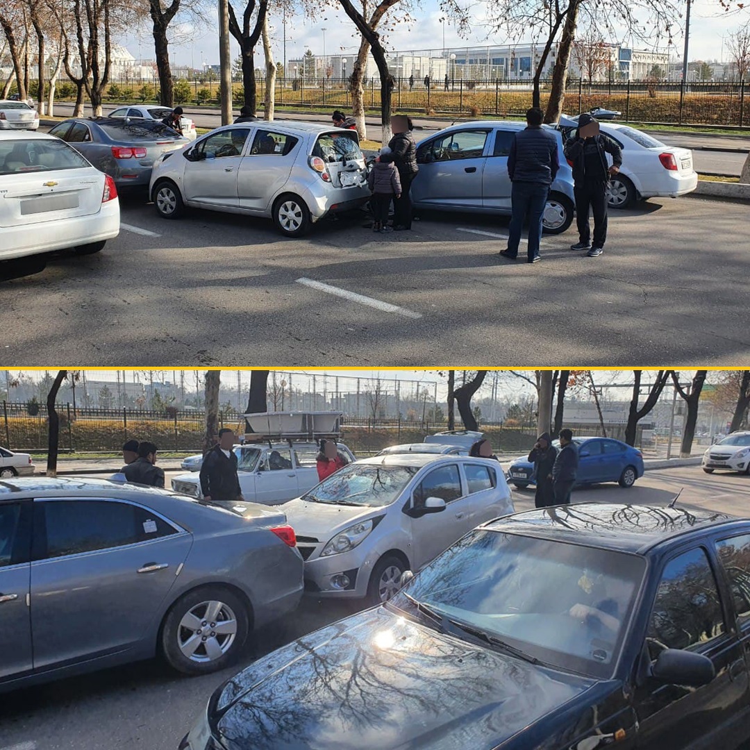 Ijtimoiy tarmoqda tarqalgan, Mirobod tumanida 5 ta avtomobil ishtirokida sodir boʻlgan YTH...