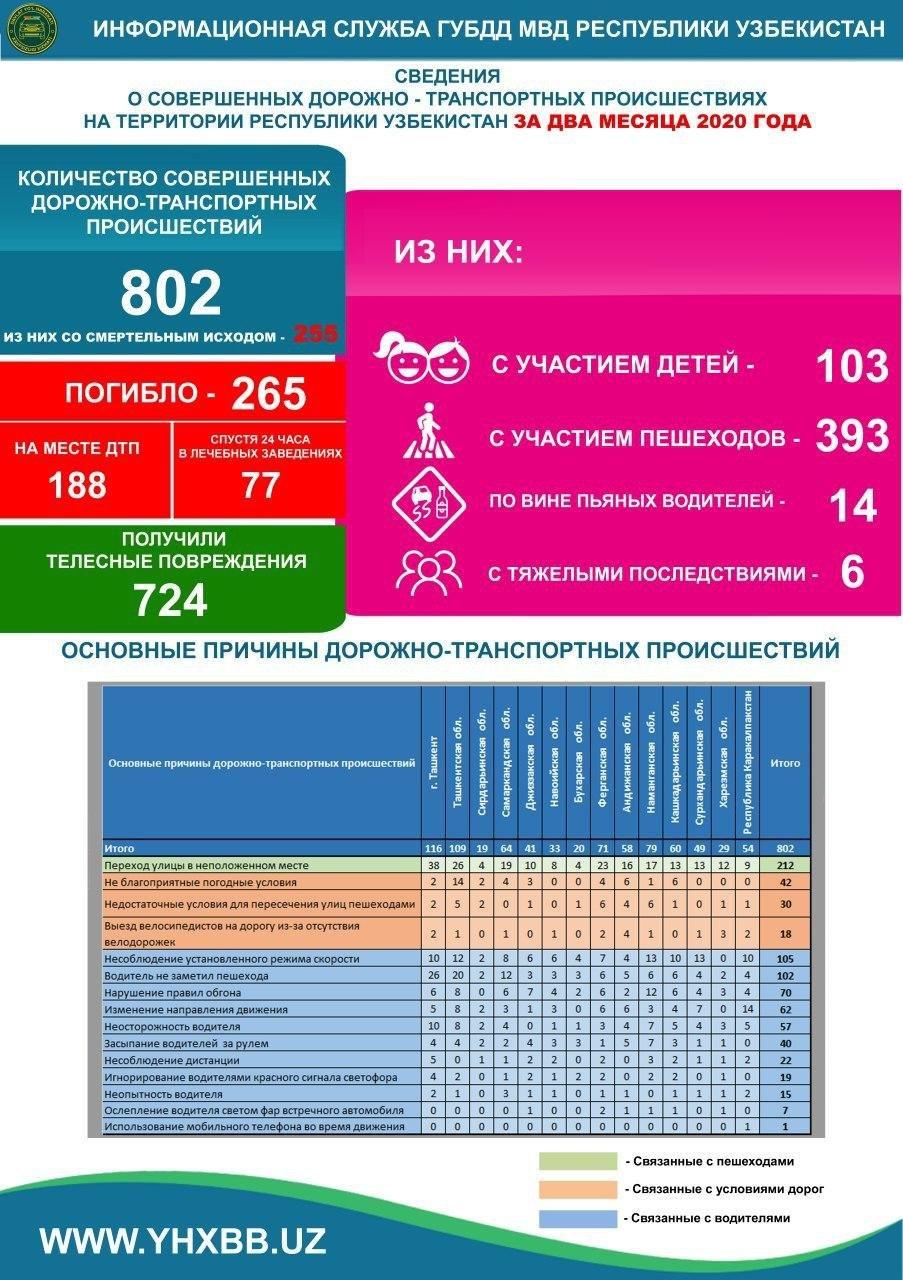Respublika hududida joriy yilning ikki oyi davomida sodir bo'lgan yo'l- transport hodisalari to'g'risida ma'lumot