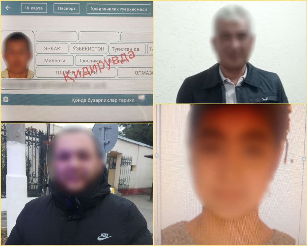 - 2022-yil 5-yanvar kuni soat 16:00 larda, Yakkasaroy tumanida xizmat olib borayotgan YPX xodimi D.Xamidjonov tomonidan, piyoda, 1969-yilda tugʻilgan M.A. toʻxtatilib, uning maʼlumotlari planshet moslamasi yordamida, maxsus dastur orqali tekshirilganida, fuqaro M.A. Oʻzbekiston Respublikasi Jinoyat Kodeksining 168-moddasi 1-qismi bilan ayblanib, 2021-yil 20-dekabr kunidan buyon qidiruvda ekanligi maʼlum boʻlgan.