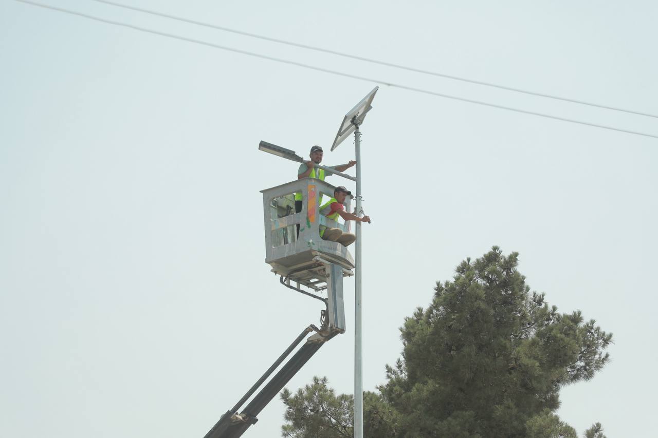 Shu bilan birga viloyatning Angor hamda Muzrabot tumanlarida piyodalar uchun tashkil etilayotgan trotuar hamda yo‘lni sun’iy yorituvchi quyosh panellarida ishlovchi zamonaviy yoritish chiroqlari o‘rnatilib foydalanishga topshirildi.