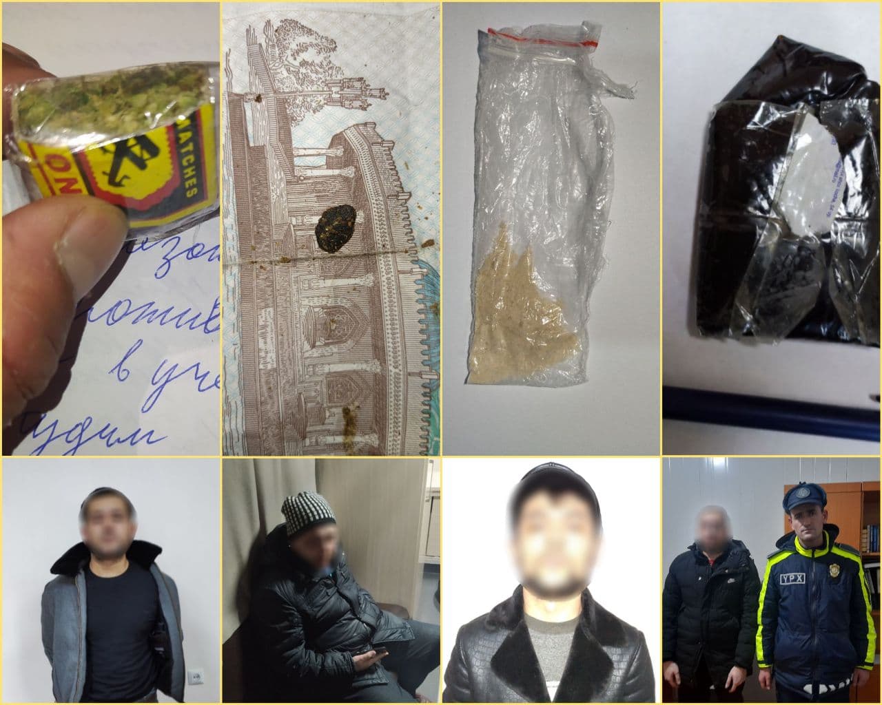 Tekshiruvlarda pul kupyurasi, gugurt qutisi va selofanga solingan, turli giyohvandlik modd...