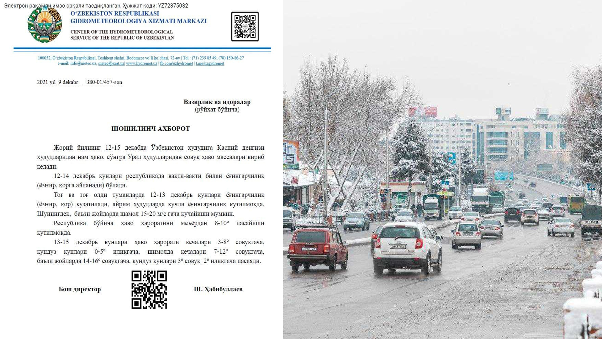 10-dekabr kuni kutilayotgan ob-havo ma’lumoti