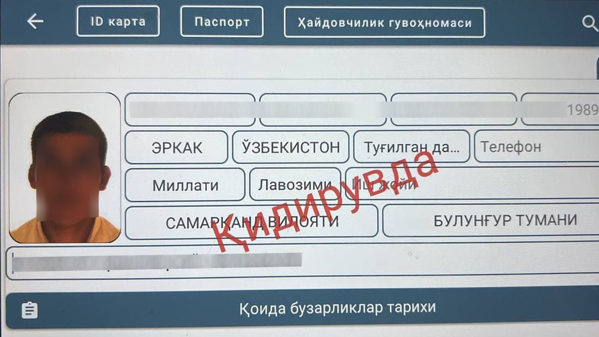 Hamkorlikdagi tekshiruv davomida "Toshkent avtoshohbekati"da qidiruvdagi shaxs ushlandi