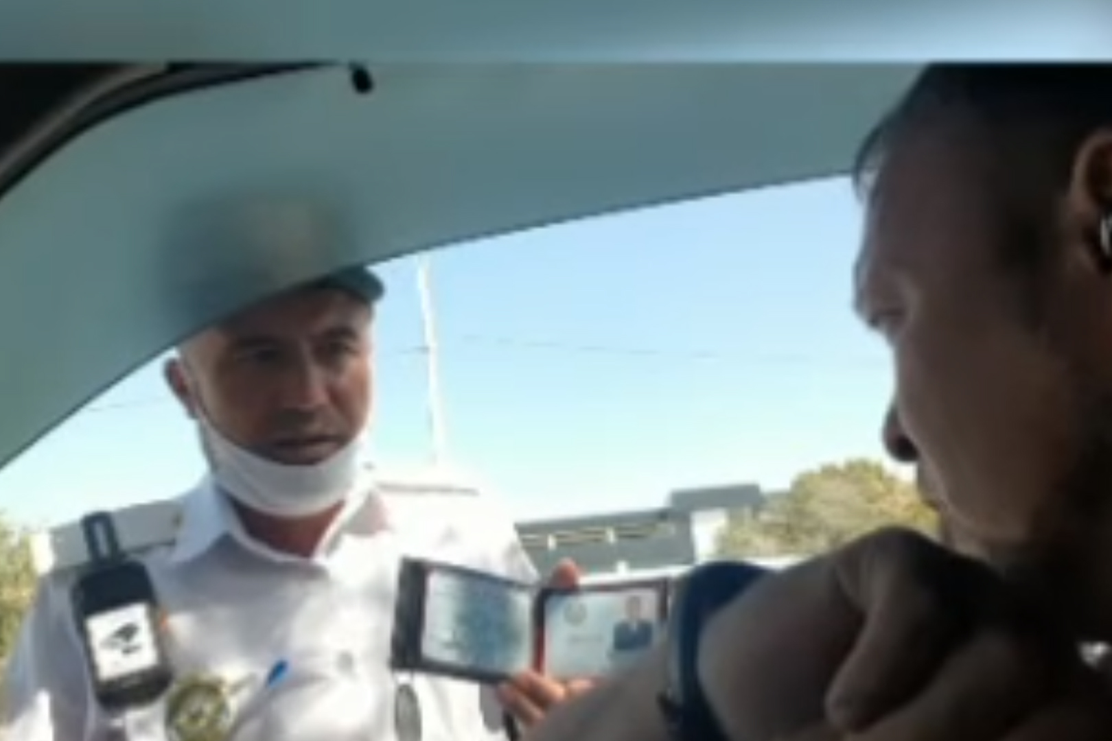 Ijtimoiy tarmoqda "Qozog‘istonlik avtoblogerni to‘xtatgan GAI xodimi qovun tushirdi" sarla...