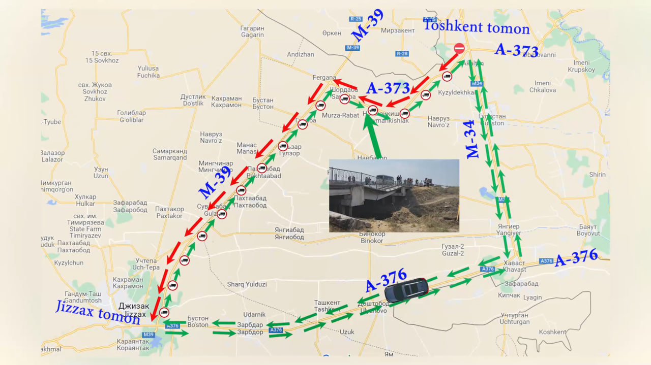 Sirdaryo viloyatining Oqoltin tumanidagi ko‘prik nosozligi sabab haydovchilar uchun aylanm...