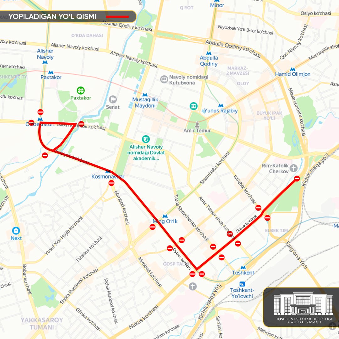 Poytaxt Toshkent shahrida ayrim ko‘chalar vaqtincha transport vositalarining harakati uchu...