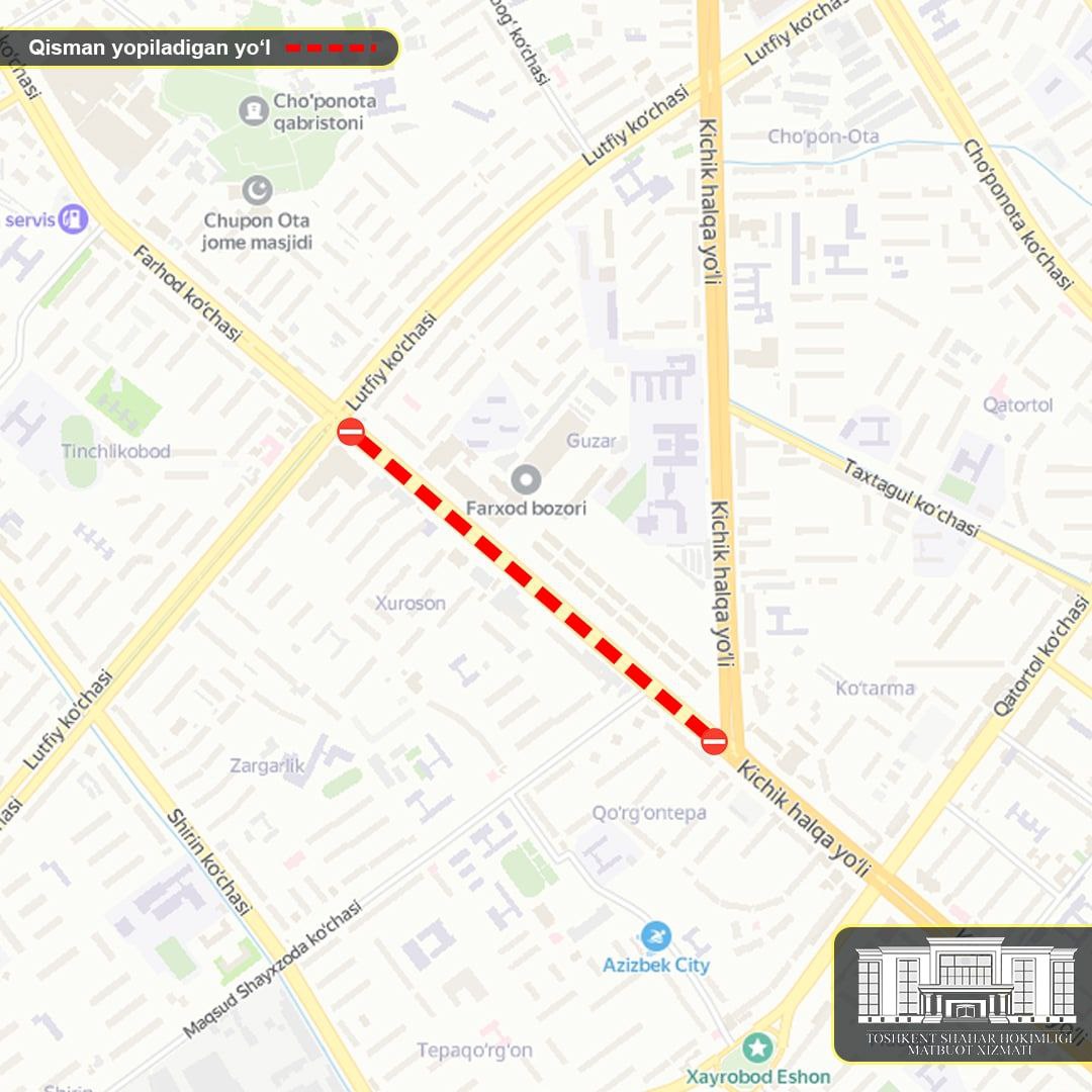 Taʼmirlash ishlari olib borilayotganligi sababli poytaxtda Farhod koʻchasi qisman yopiladi