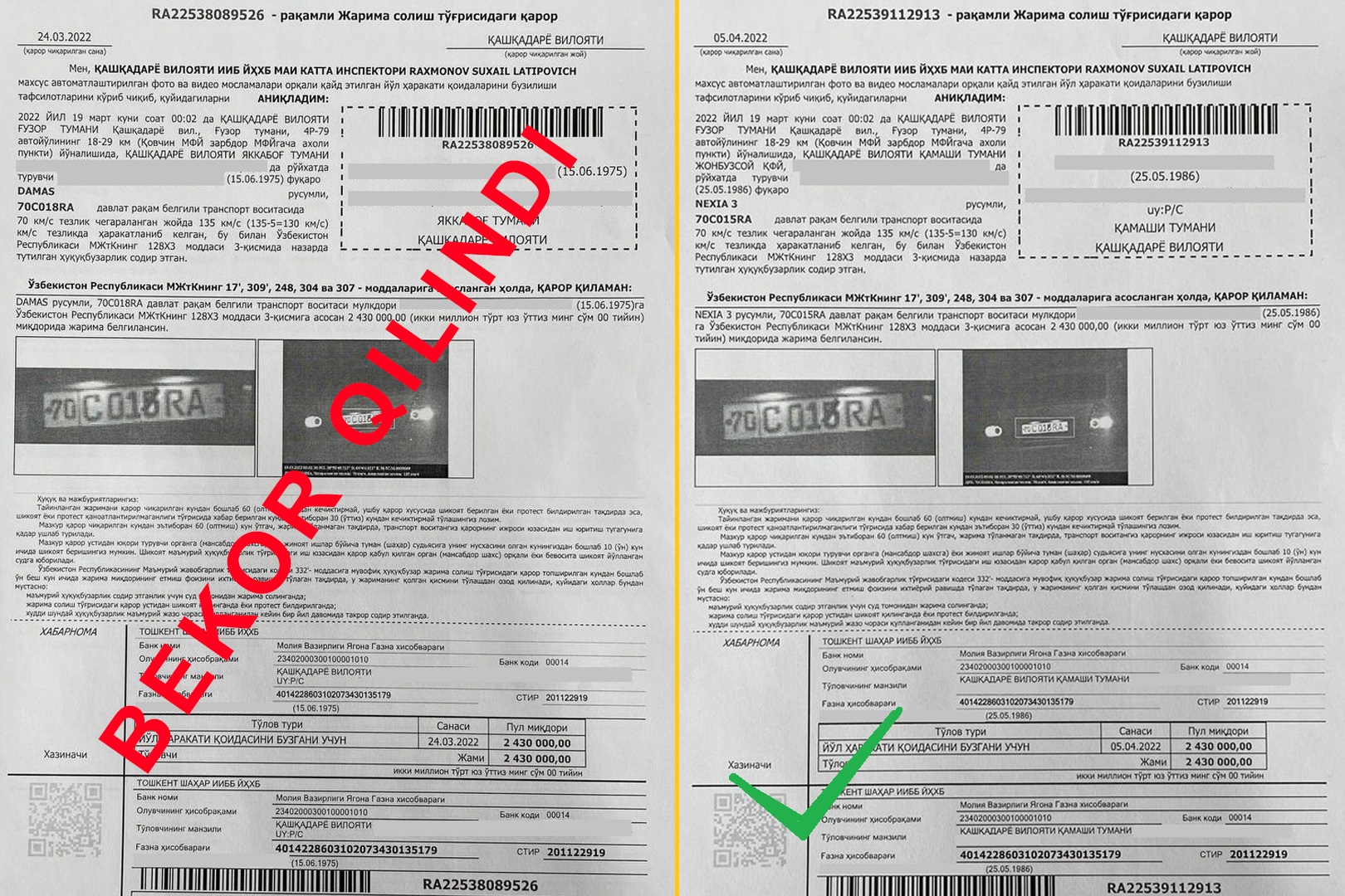 Avtomobil davlat raqam belgisiga qoplama yopishtirilganligi sabab boshqa manzilga yuborilg...
