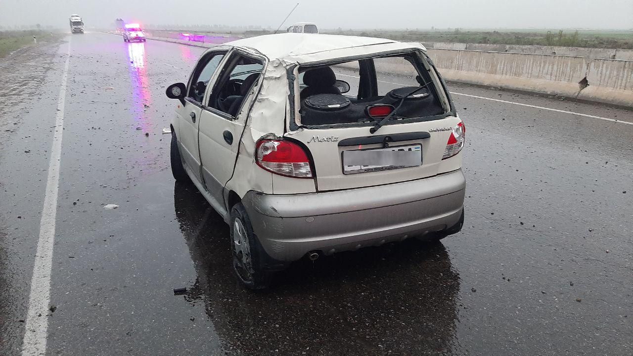 Автомашина салонида бўлган йўловчилар: 35 ёшли М.М., 14 ёшли У.Э., 12 ёшли А.Э. ва 6 ёшли С.Э. лар тиббиёт бирлашмасига турли тан жароҳатлари билан ётқизилган.
