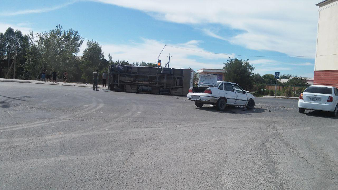 Дастлабки маълумотларга кўра, жорий йилнинг 5 июль куни соат 15:40 ларда, Жиззах вилояти, Жиззах шаҳар, Олмазор ва Мустақиллик кўчалари кесишмасида ҳайдовчи 1975 й.т. Б.С. бошқарувидаги Автобус ҳамда ҳайдовчи 1993 й.т. Б.Ф. бошқарувидаги “Нексия” русумли транспорт воситалари иштирокида тўқнашув содир бўлган. Тўқнашув натижасида автобус ағдарилган. Автобусда 3 нафар йўловчилар бўлган.