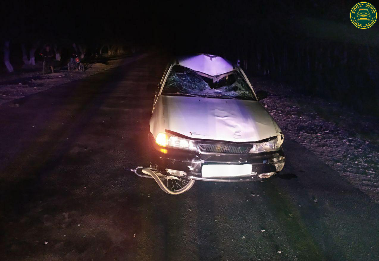 Жорий йилнинг 11 сентябрь куни соат 02:30 ларда, Навоий вилояти, Хатирчи тумани, А.Навоий МФЙ ҳудудидан ўтган 4R-56 автомобиль йўлининг 20-километрида, ҳайдовчи, 1997 йилда туғилган Ў.Ё. “Нексия” русумли автомобилни бошқариб кетаётиб, қаршисидан, маст ҳолда ҳаракатланиб келаётган велосипед ҳайдовчиси, 1969 йилда туғилган А.Т.ни уриб юборган.