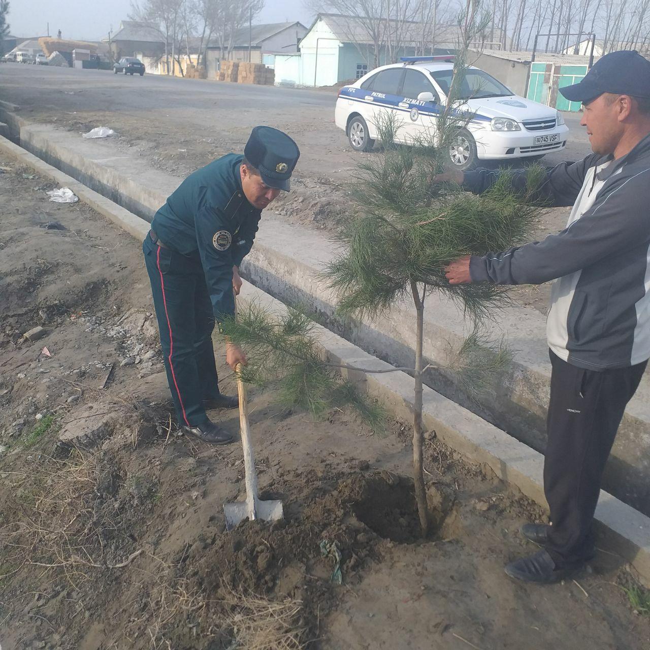 Баҳор – бунёдкорлик фасли кириб келганлиги муносабати билан, республикамизнинг барча ҳудудларида мевали ва манзарали кўчатлар экиш ишлари авжига чиқди. Бугун Самарқанд вилояти ИИБ ЙҲХБ ходимлари ҳам ана шундай савобли ишни амалга оширдилар. Келгусида ҳар томонлама фойдаси тегадиган мевали ва манзарали кўчатларни йўл ёқалари ва хизмат бинолари ҳовлисига ўтказишди. Ободонлаштириш ишлари давом этади.