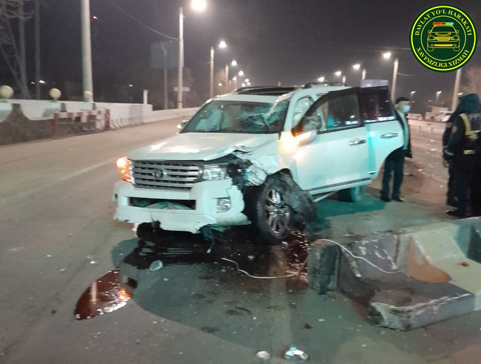 Жорий йилнинг 12 январь куни соат 21:35 ларда, Тошкент шаҳар, Бектемир тумани, “Шарқ” ЙПХ маскани олдида, ҳайдовчи, 1988 йилда туғилган С.А. “Toyota Land Cruiser” русумли автомобилида ҳаракатланаётиб бошқарувни йўқотиши оқибатида, ўзидан олдинада бўлган ҳайдовчи, 1967 йилда туғилган Б.Р. бошқарувидаги “Ласетти” русумли автобилга ҳамда йўл қатнов қисмини ажратиб турувчи бетон тўсиққа урилиб, ЙТҲ содир этган.