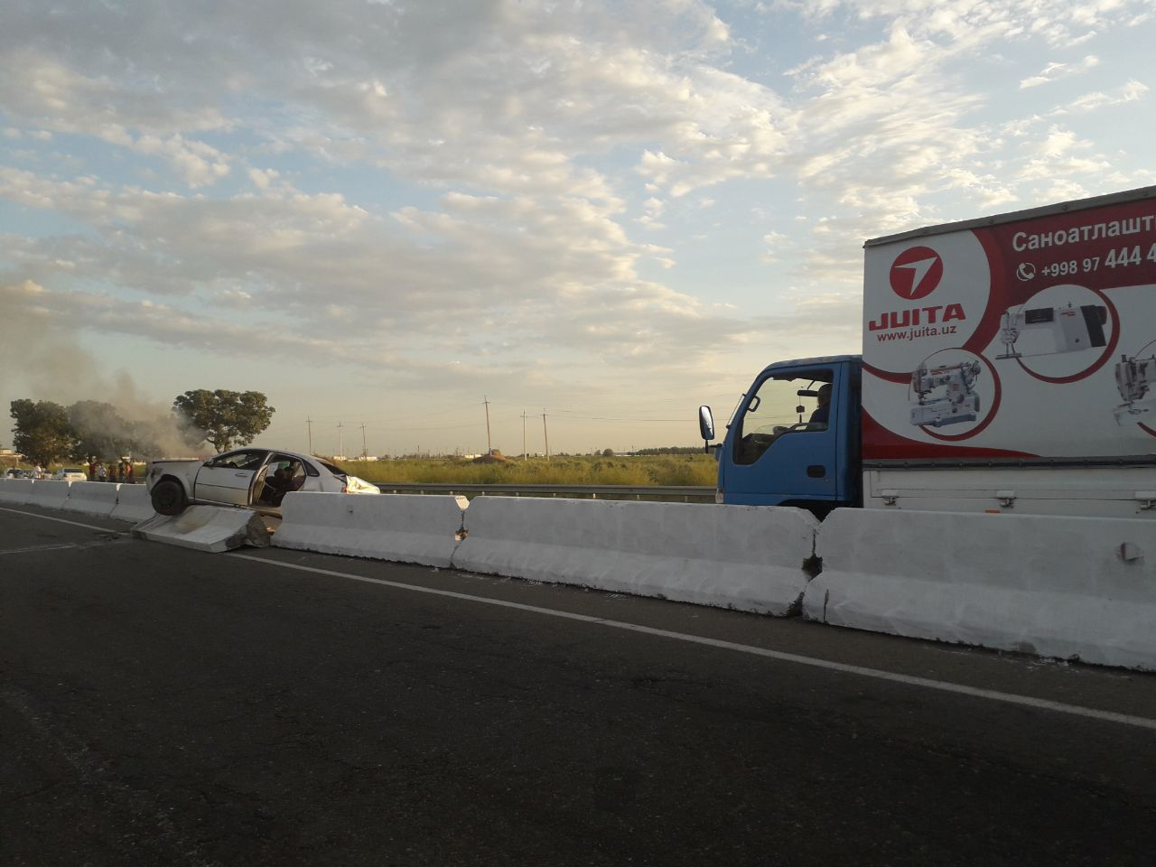 Дастлабки маълумотларга кўра, жорий йилнинг 28 июль куни соат 18:50 ларда, Сирдарё вилояти, Сирдарё тумани ҳудудидан ўтган М-34 йўлининг 103 километрида ҳайдовчи 1969 йилда туғилган Н.Э. “Isuzu” русумли автомашинани “Тошкент-Гулистон” йўналишида бошқараётиб, “Гулистон-Тошкент” йўналишида ҳаракатланиб келиб рухсат этилган жойдан қайрилиб олган ҳайдовчи 1986 йилда туғилган М.А. бошқарувидаги “Lacetti” русумли транспорт воситасининг орқа томонига бориб урилган. Зарб оқибатида “Lacetti” русумли автомобиль ҳайдовчиси бошқарувни йўқотиб, қарама-қарши бўлакни ажратувчи бетон тўсиққа урилган ва автомашинада ёнғин юзага келган.