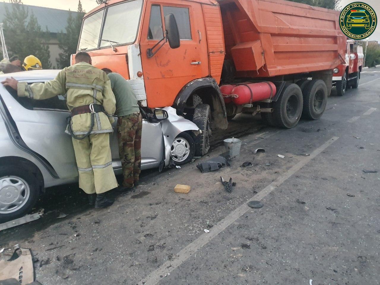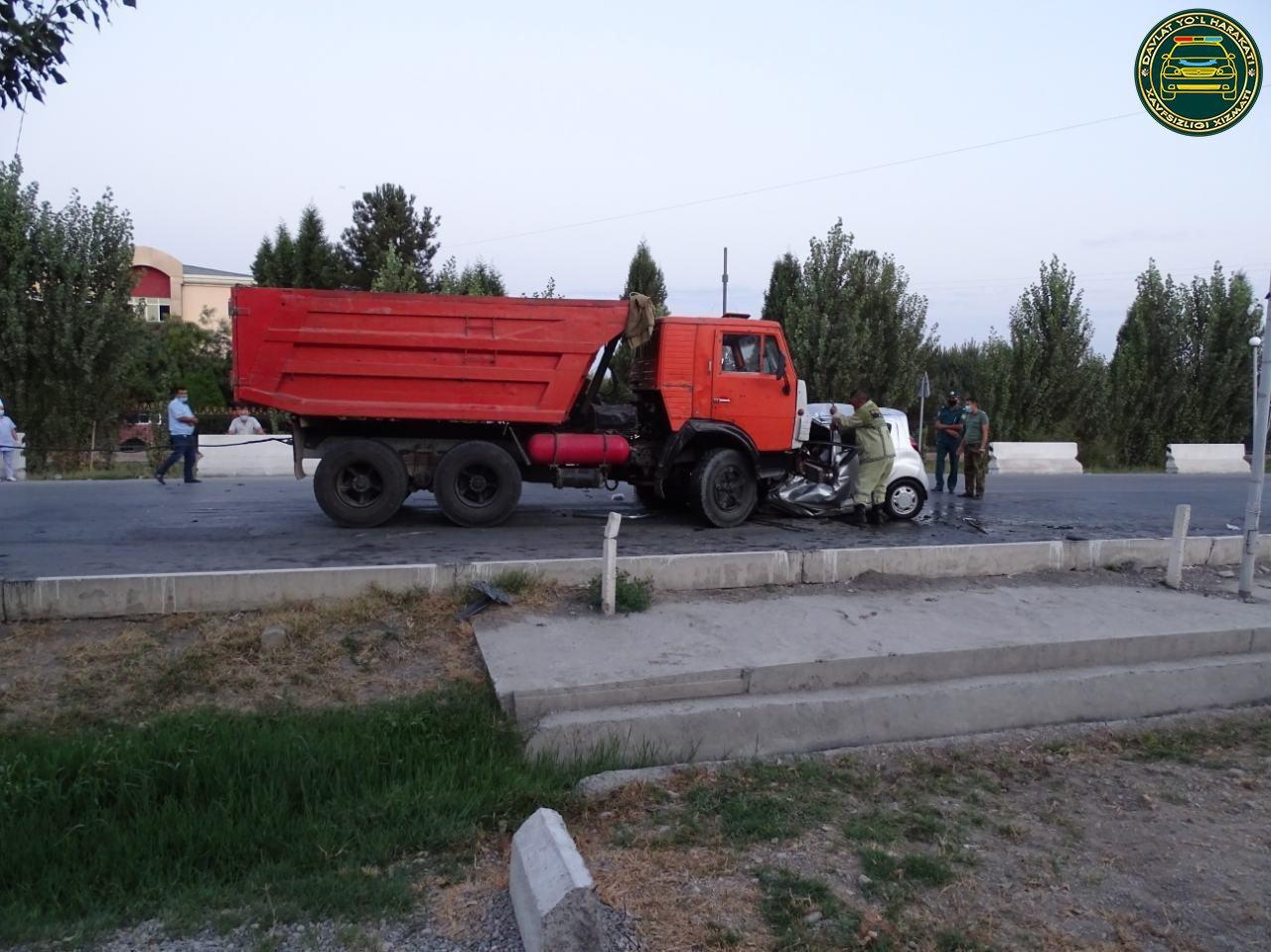 Натижада, “Спарк” русумли автомобиль ҳайдовчиси 29 ёшли С.Ф. ва йўловчиси 1991 йилда туғилган А.Н.лар оғир тан жароҳатлари олиб воқеа жойида вафот этишган.