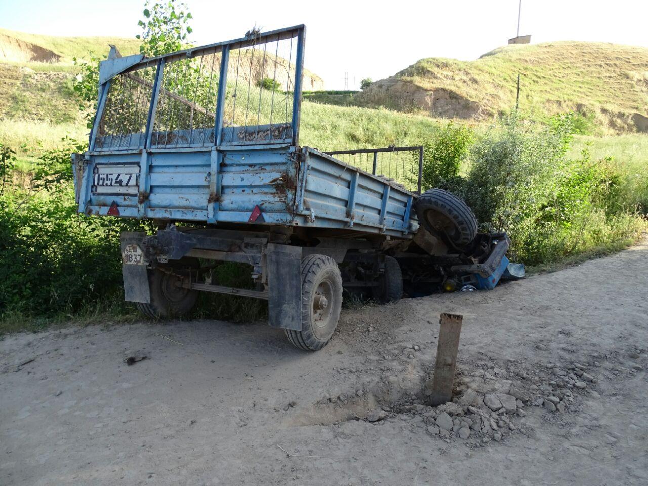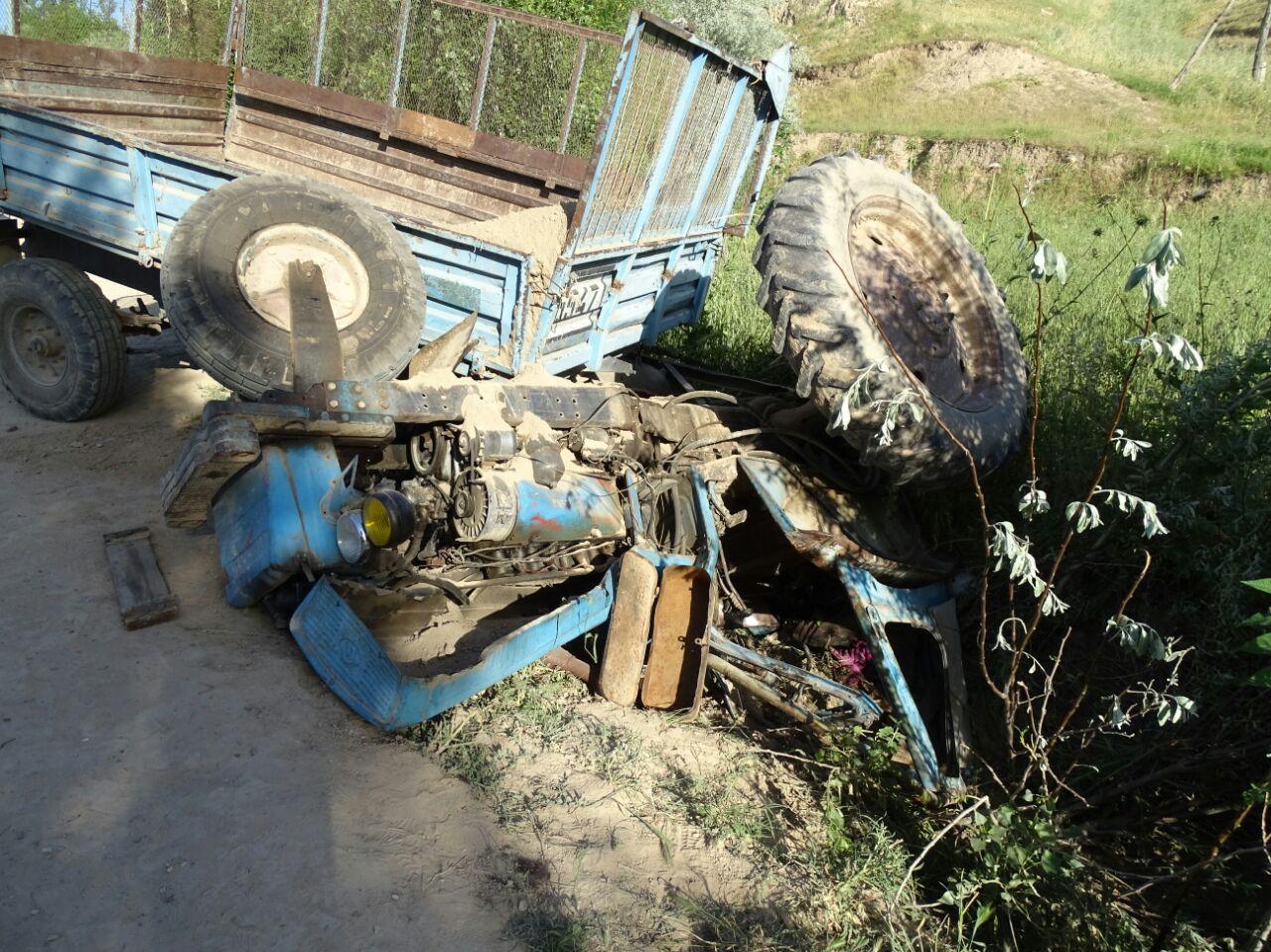 Жорий йилнинг 22 май куни соат 19:20 ларда, Сурхондарё вилояти, Узун тумани, Чинор маҳалласи ҳудудидаги адирликда, транспорт воситалари ҳаракатланиши учун мўлжалланмаган жойда ҳайдовчи 1971 й.т. Э.Х. (эркак) “ТТЗ-28” русумли тиркамали тракторни пастлик томон бошқариб кетаётиб, рул бошқарувини йўқотиб, жарликка ағдарилган.