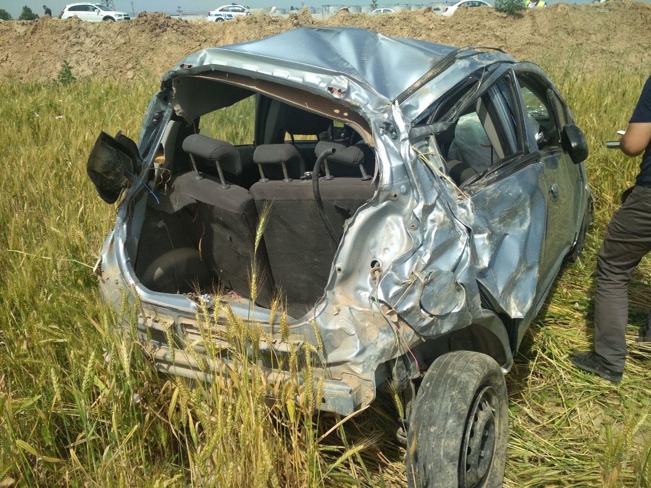 Жорий йилнинг 27 май куни соат 09:30 ларда, Жиззах вилояти, Шароф Рашидов тумани ҳудудидан ўтувчи 4Р-35 “Жиззах-Қўрғонтепа-Навбаҳор” автомобиль йўлининг 13 км.да “Навбаҳор-Жиззах” йўналишида ҳайдовчи 1993 й.т. Ҳ.А. (эркак) “Спарк” русумли транспорт воситасини бошқариб кетаётган вақтида, автомобилнинг олдинги ўнг шинасидан ҳаво чиқиб кетиши оқибатида ҳайдовчи руль бошқарувини йўқотиб, йўлнинг ўнг томононига чиқиб кетиб, экин дала майдонига ағдарилиб, ЙТҲ содир қилган.