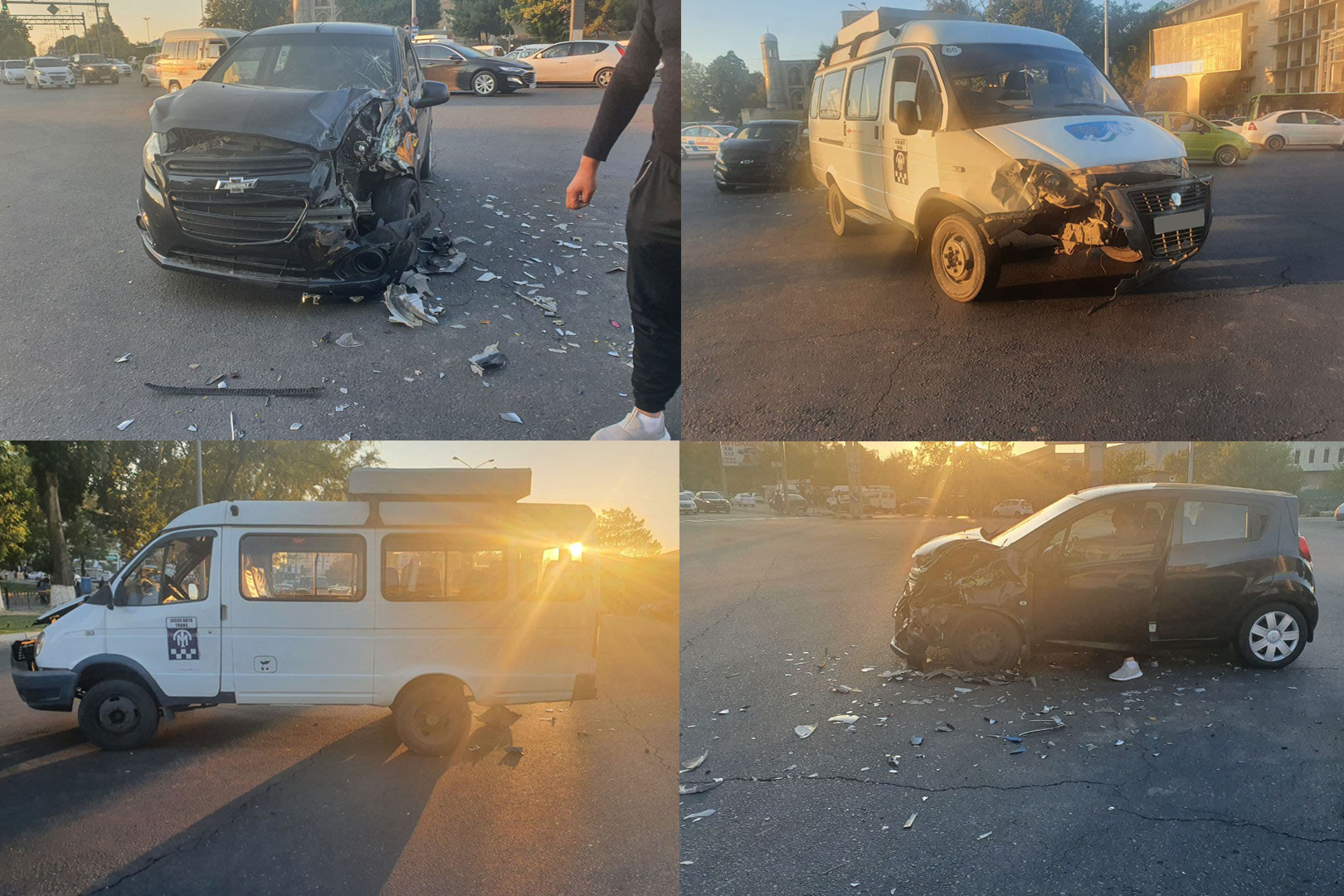Ижтимоий тармоқда тарқалган, Мирзо Улуғбек туманида олдинма-кетин тўқнашган 5 та автомобил...