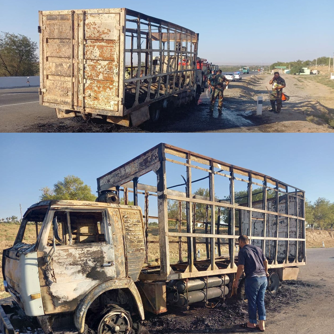 Жиззахда юк автомобили ёниб кетди