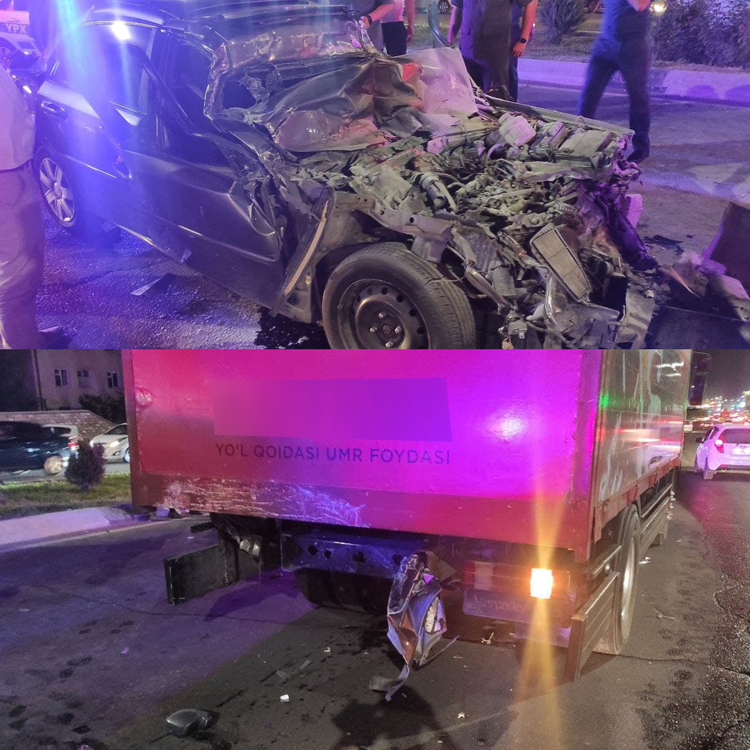 Пойтахтда "Lacetti" автомобили қизил чироқда тўхтаб турган юк автомобилининг орқа томонига...
