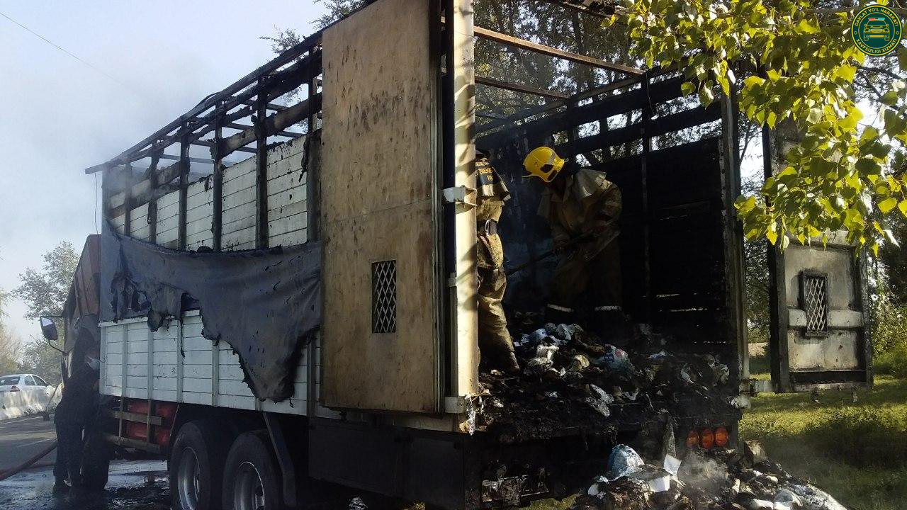Сирдарё туманида ҳаракатланаётган “Камаз” юкхонасида ёнғин чиқди