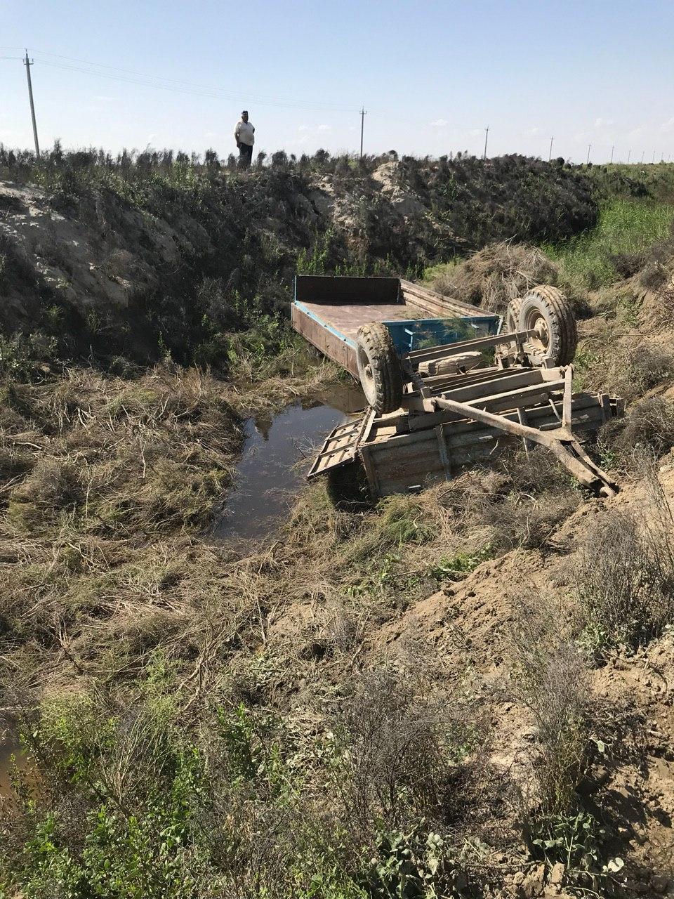 Трактор тиркамаси дала йўлида зовурга ағдарилди. Қурбонлар бор.