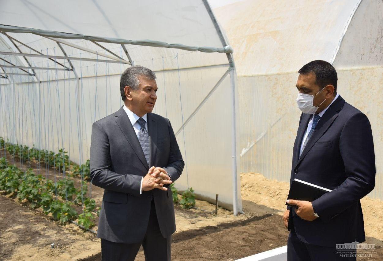Давлатимиз раҳбари Наманган вилоятига ташрифи доирасида Чортоқ тумани Баланд адир ҳудудидаги иссиқхоналар мажмуасини барпо этиш лойиҳаси билан танишди.