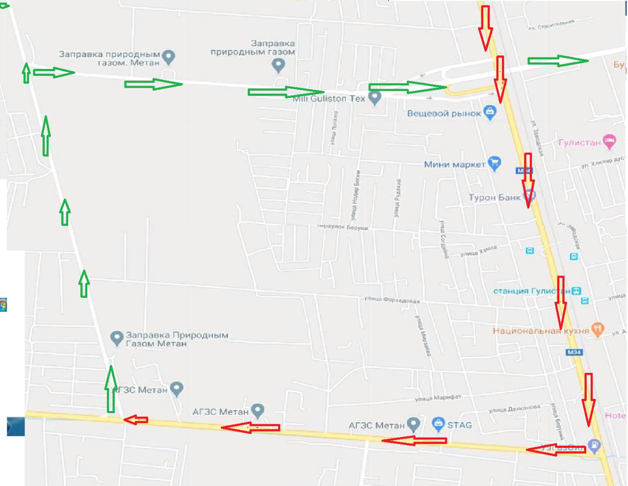 Шу сабабли, вилоят махсус комиссиясининг қарорига асосан, жорий йилнинг 29 июль куни соат 17:00 дан бошлаб М 34 йўлининг "Тошкент-Гулистон" йўналишида Гулистон шаҳрига кириш, яъни йўл ўтказгич кўприкка олиб чиқувчи йўл транспорт воситалари учун тўлиқ ёпилади. Гулистон шаҳрига транспорт воситаси орқали кириб келиш фақатгина Мирзаобод тумани Фарғона йўли кўчаси (мол бозор) 4Р-18А ва 4Р28А автомобиль йўллари орқали рухсат этилади.