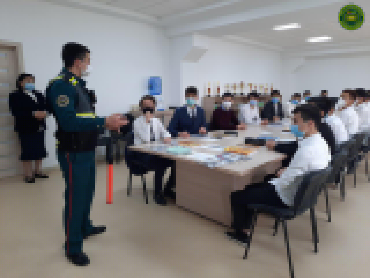 Соҳа ходимлари болаларга йўл ҳаракати қоидаларига доир турли хил саволлар беришиб унда муносиб иштирок этганлар эсталик совғалари билан тақдирланишди. Тадбир сўнгида ўқувчиларга йўлда ҳаракатланиш тартибига доир буклет ва эслатмалар тарқатилди.