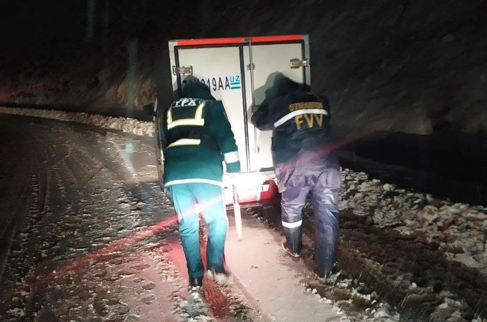 Республикамиз бўйлаб ёғган қор автомобиль йўлларида турли кўнгилсиз ҳодисаларга сабаб бўлмоқда. Ана шундай ҳодисалар содир бўлишига йўл қўймаслик мақсадида, ҳаракат қатнашчилари саломатлиги йўлида ЙПХ ва йўлга масъул бошқа ташкилот ходимлари тунда ҳам ўз хизмат вазифаларини виждонан олиб боришмоқда. Ҳаво ҳарорати паст эканлигига қарамай, хизматни узлуксиз олиб бораётган, фуқаролар саломатлиги йўлида хизмат қилаётган ходимларга миннатдорчилик билдирамиз.