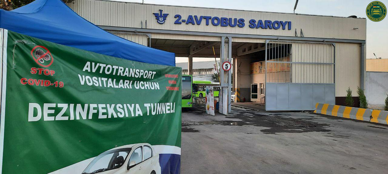 Тошкент шаҳар ИИББ ЙҲХБ Транспорт воситаларининг техник ҳолати устидан назоратни ташкил этиш бўлими ходимлари томонидан пойтахт ҳудудида жойлашган "Тошшаҳартрансхизмат" акциядорлик жамиятига қарашли 8 та автопаркларда йўналишсиз такси автомобиллари ва барча автобуслар йўналишга чиқишдан аввал карантин қоидалари асосида дезинфекция қилиниши юзасидан текширув ишлари ўтказилди.