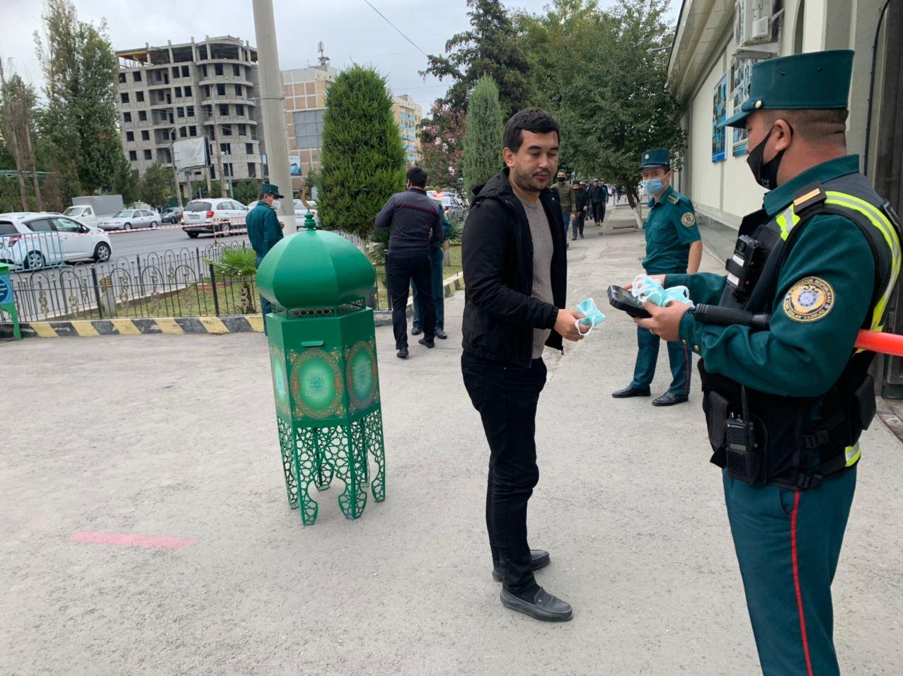 Шуларни инобатга олиб бугун Тошкент шаҳри ИИББ ЙҲХБ ходимлари томонидан муборак жума номозларини ўқиш мақсадида пойтахтдаги мавжуд масжидларга ташриф буюрган фуқароларнинг саломатлигини ўйлаб масжидга тиббиёт ноқобисиз келган инсонларнинг барчасига тиббиёт ниқоблари тарқатилди.