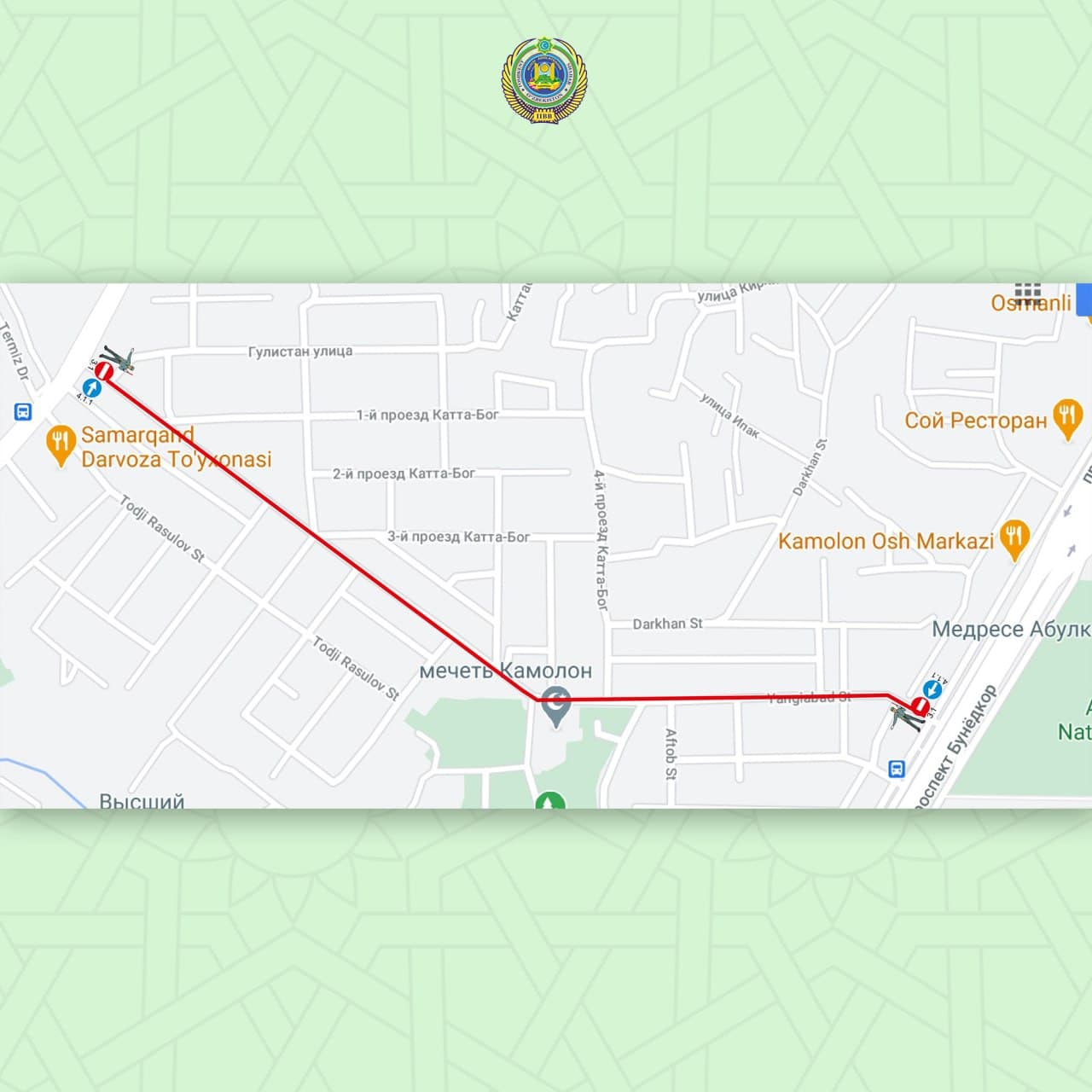 - Келес кўчаси Норазтепа кўчасидан Гулсарой кўчасигача;
