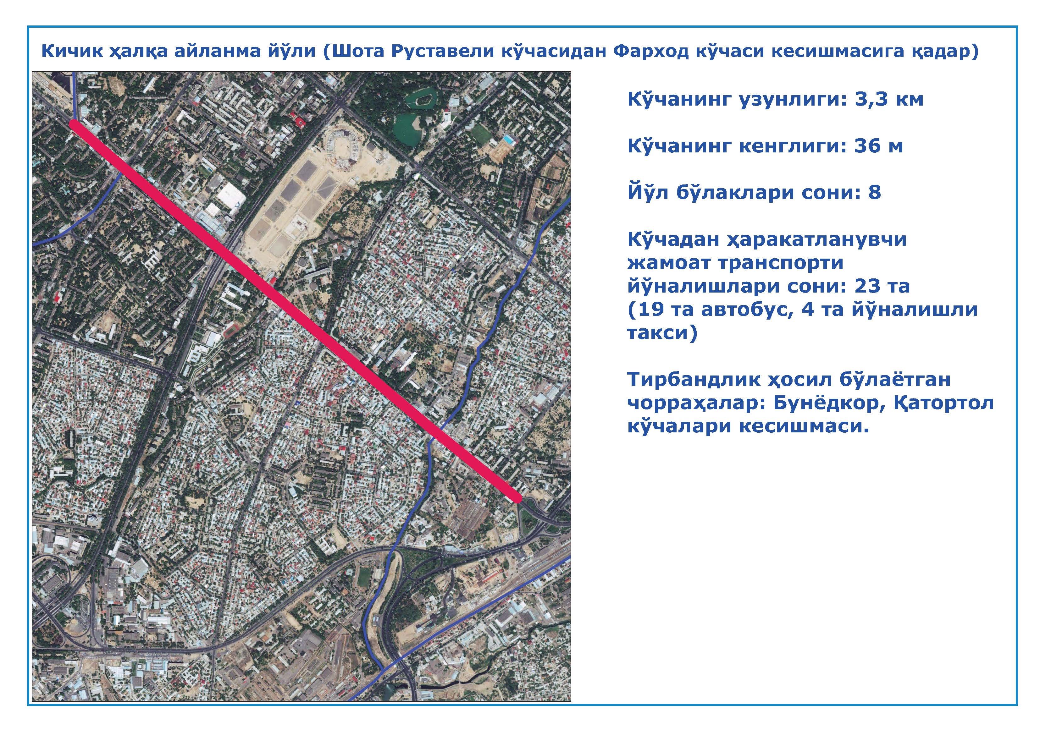 3. Кичик ҳалқа айланма йўли (Шота Руставели кўчасидан Фарход кўчаси кесишмаси);
