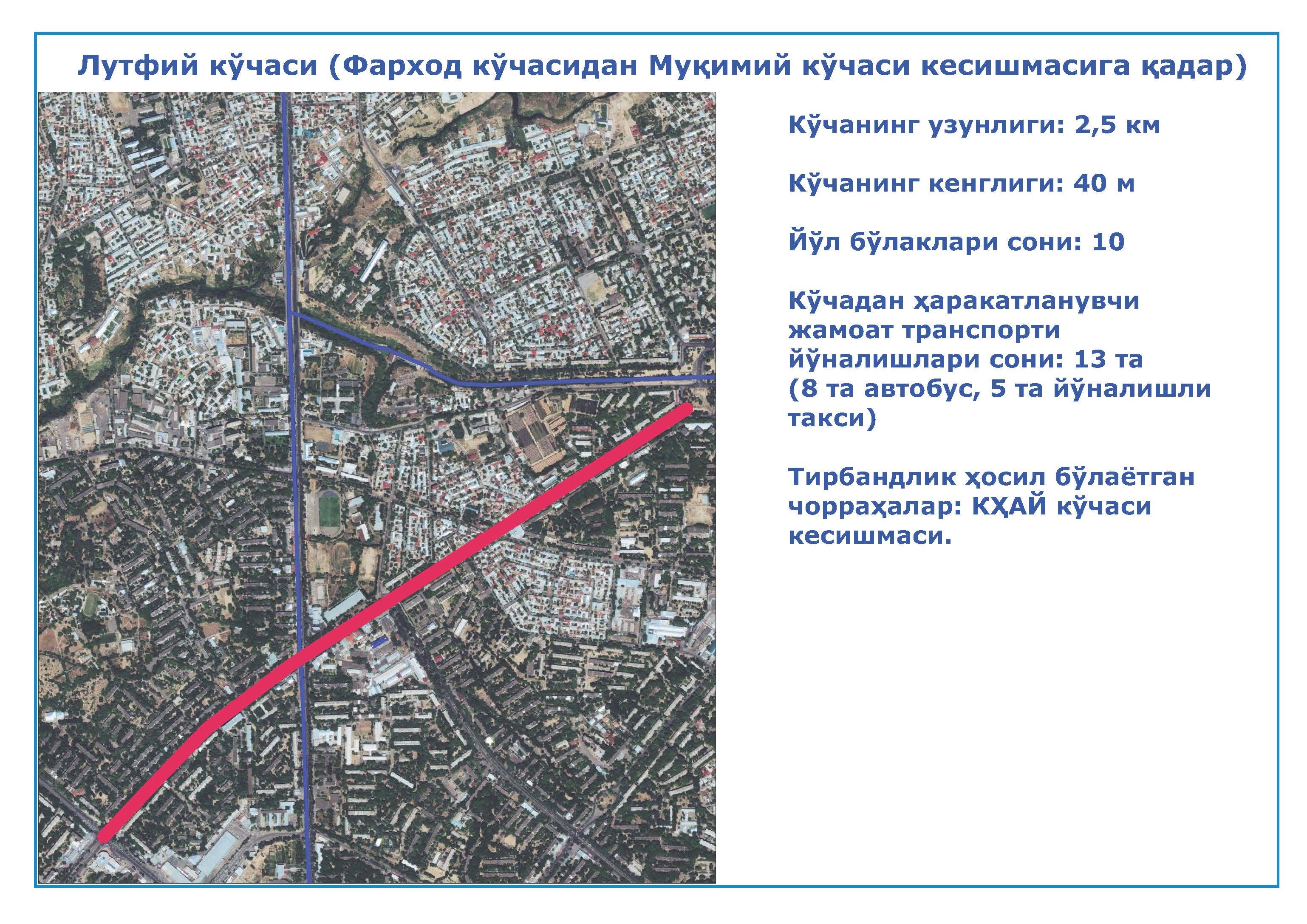 5. Лутфий кўчаси (Фарход кўчасидан Муқимий кўчаси кесишмаси);