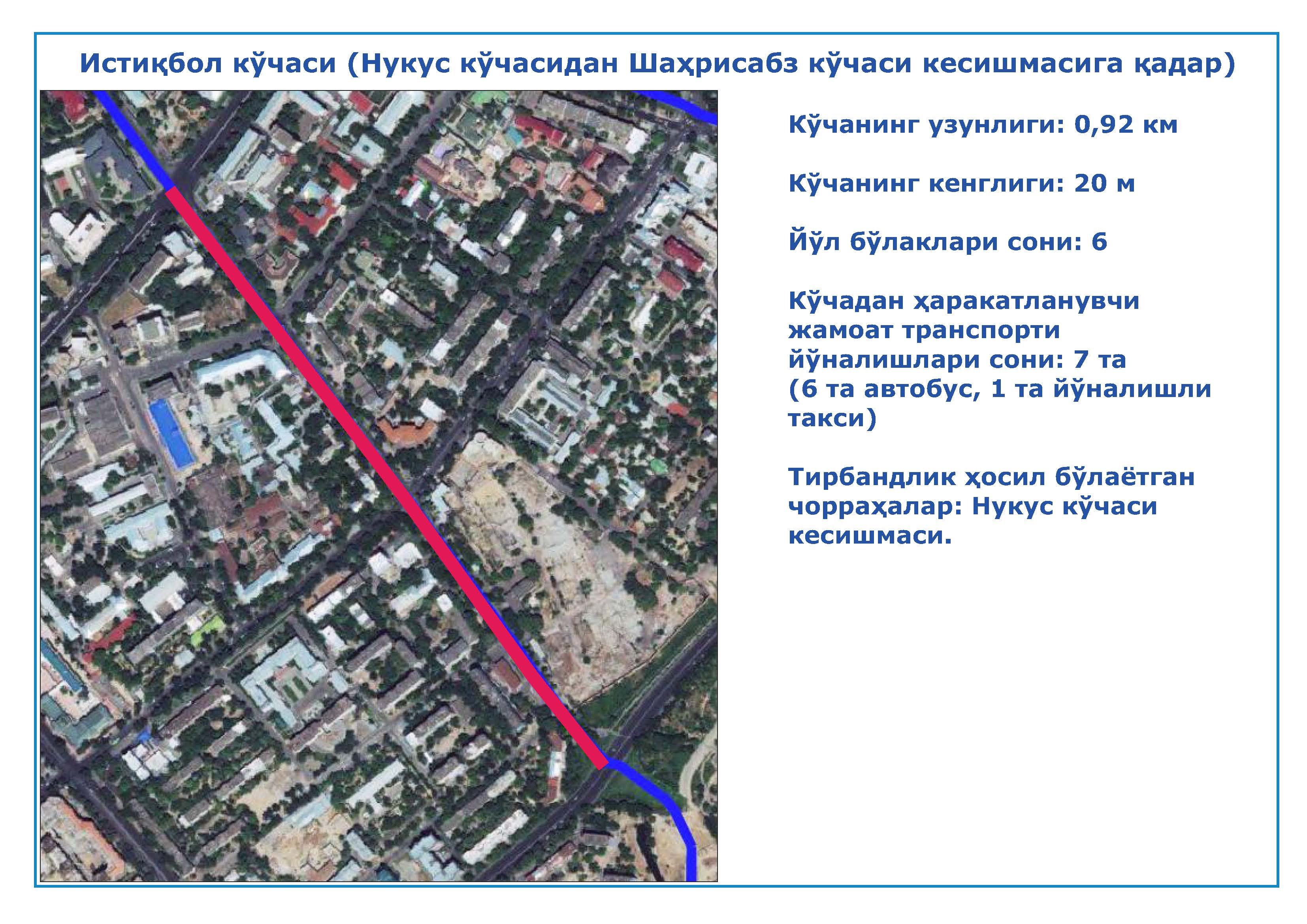 8. Истиқбол кўчаси (Нукус кўчасидан Шаҳрисабз кўчаси кесишмаси);