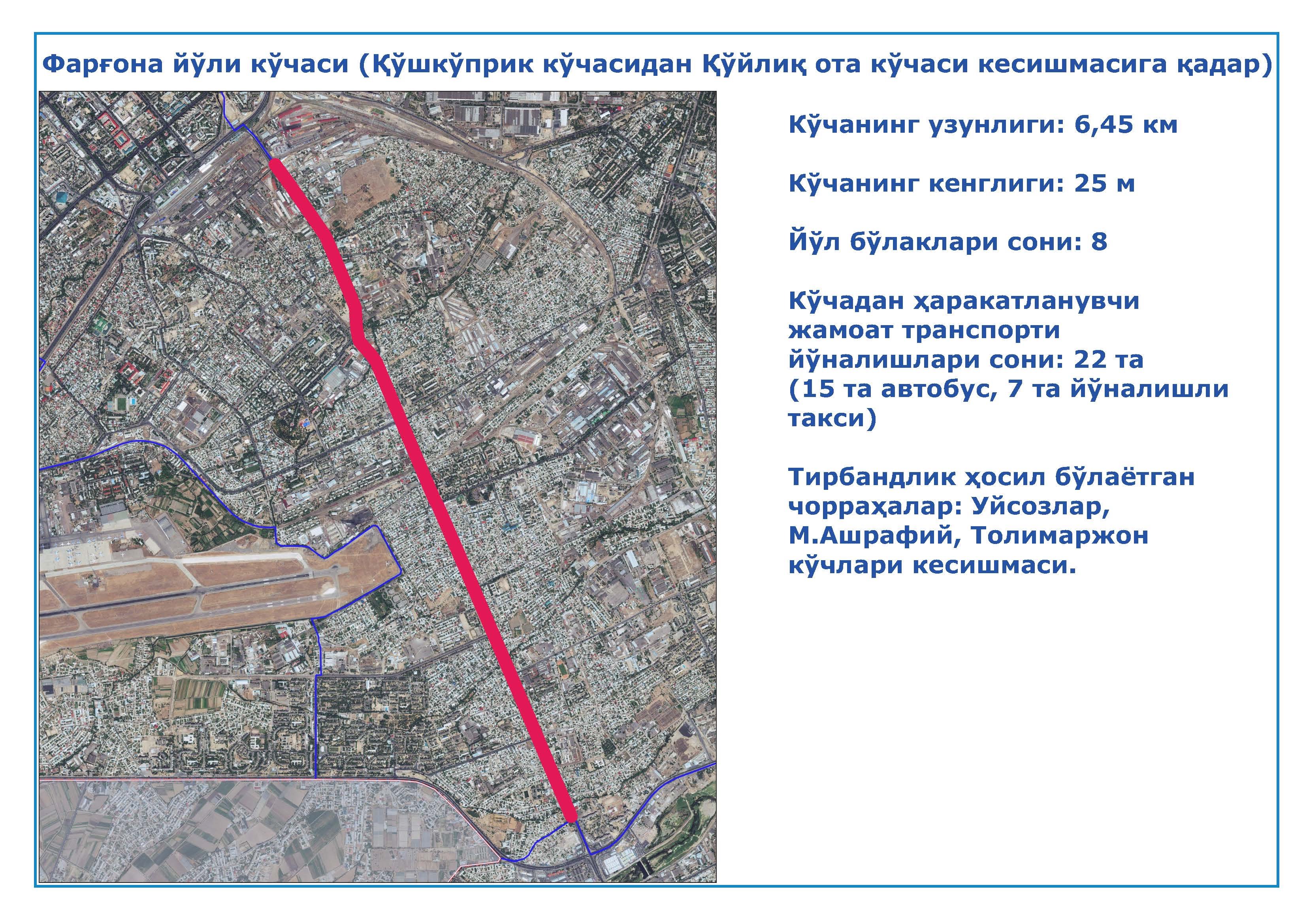 7. Фарғона йўли кўчаси (Қўшкўприк кўчасидан Қўйлиқ ота кўчаси кесишмаси);