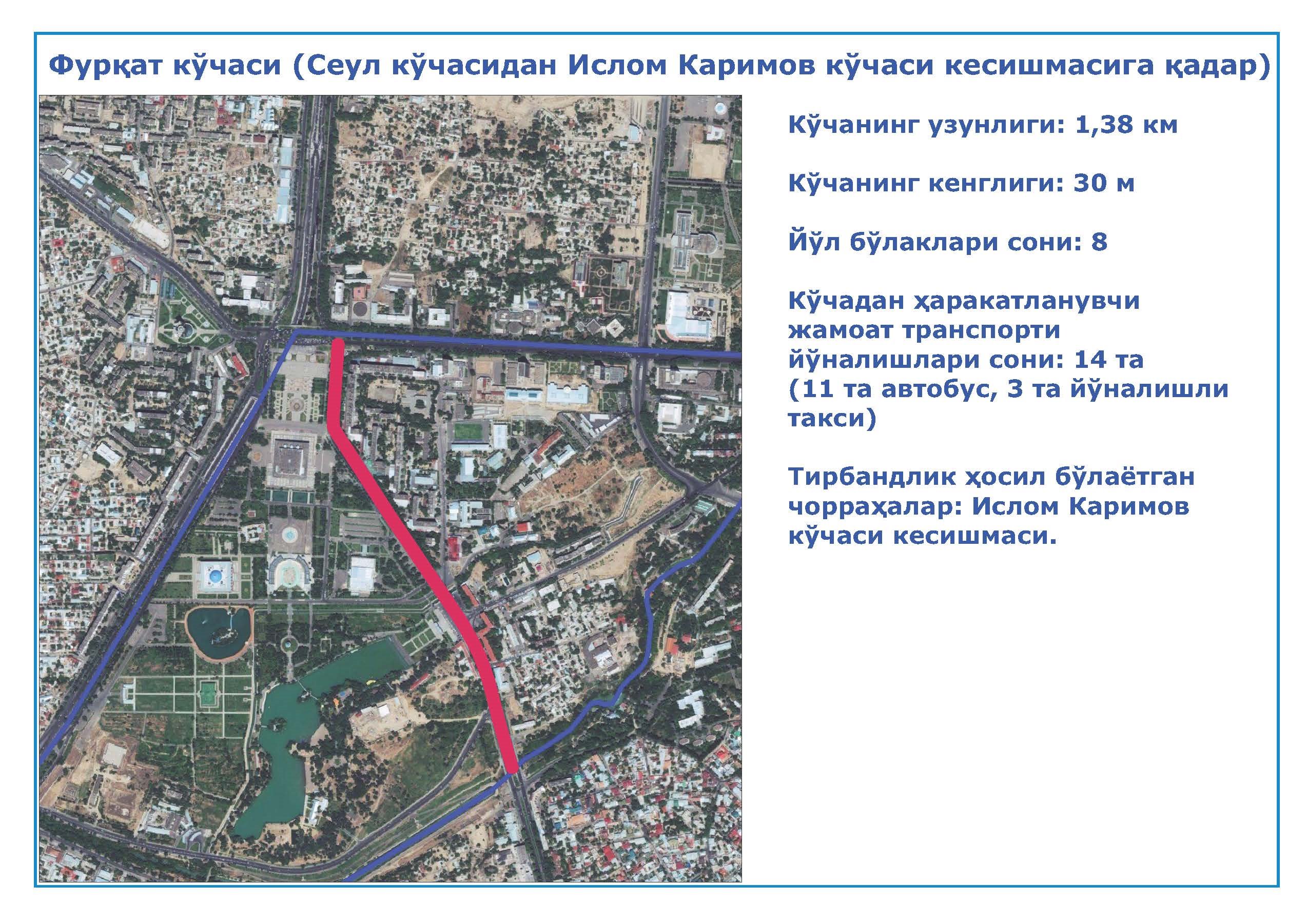 2. Фурқат кўчаси (Сеул кўчасидан Ислом Каримов кўчаси кесишмаси);