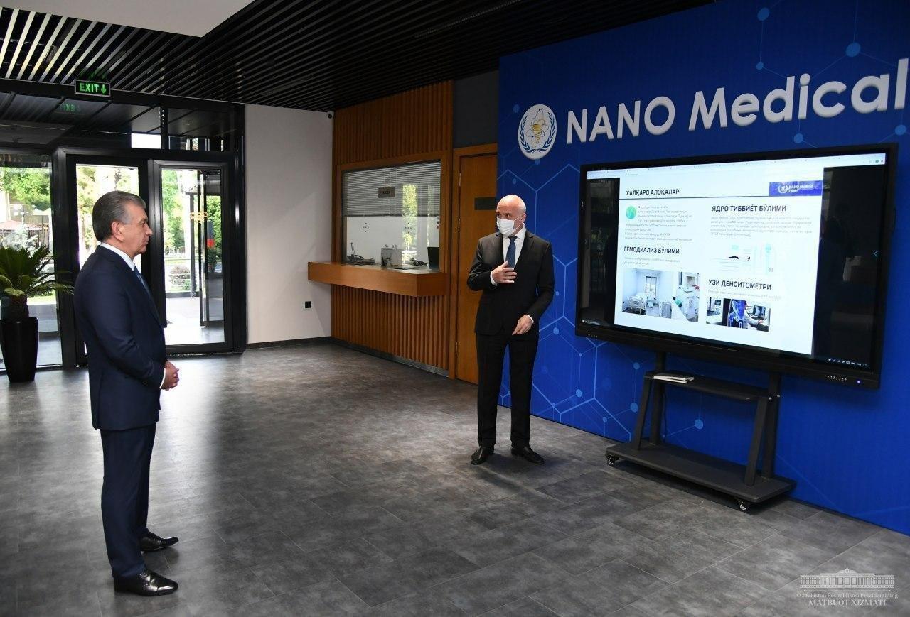 Президент Шавкат Мирзиёев Олмазор туманидаги “NANO Medical Clinic” кўп тармоқли шифохона фаолияти билан танишди.