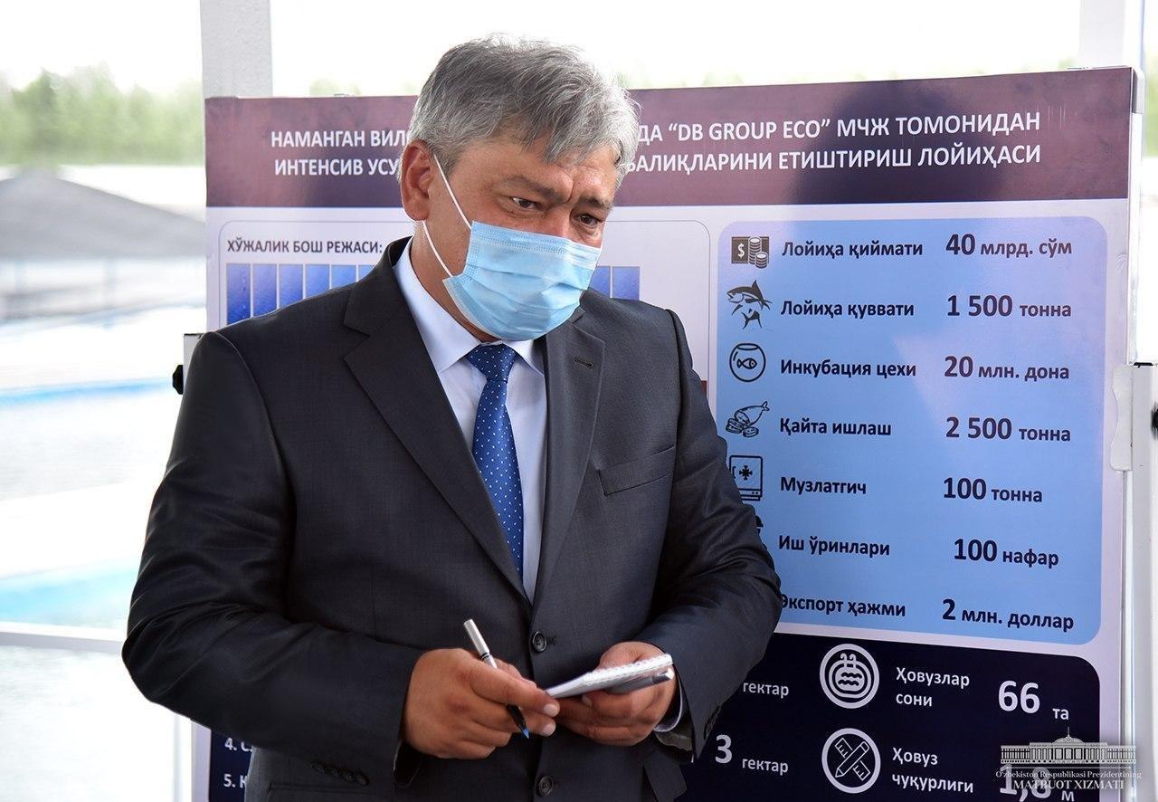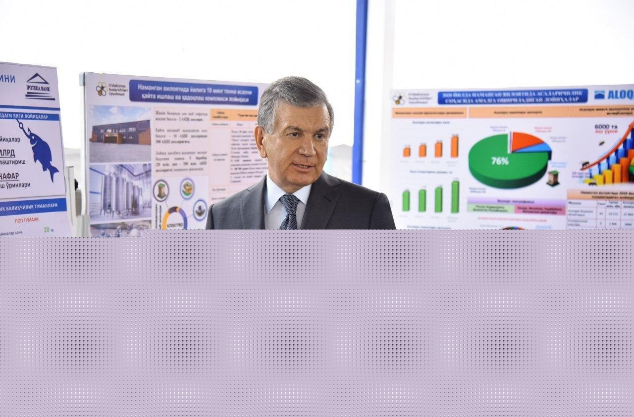 Президентимиз бундай корхоналарнинг қурилиш лойиҳаларида балиқ етиштиришнинг ўзига хос жиҳатларини инобатга олиб, жиддий ёндашиш лозимлигини таъкидлади. Вилоятнинг Учқўрғон, Мингбулоқ, Уйчи, Поп ва Норин туманларида 299 миллиард сўм қийматга эга 75 та янги лойиҳа амалга ошириш кўзда тутилган.