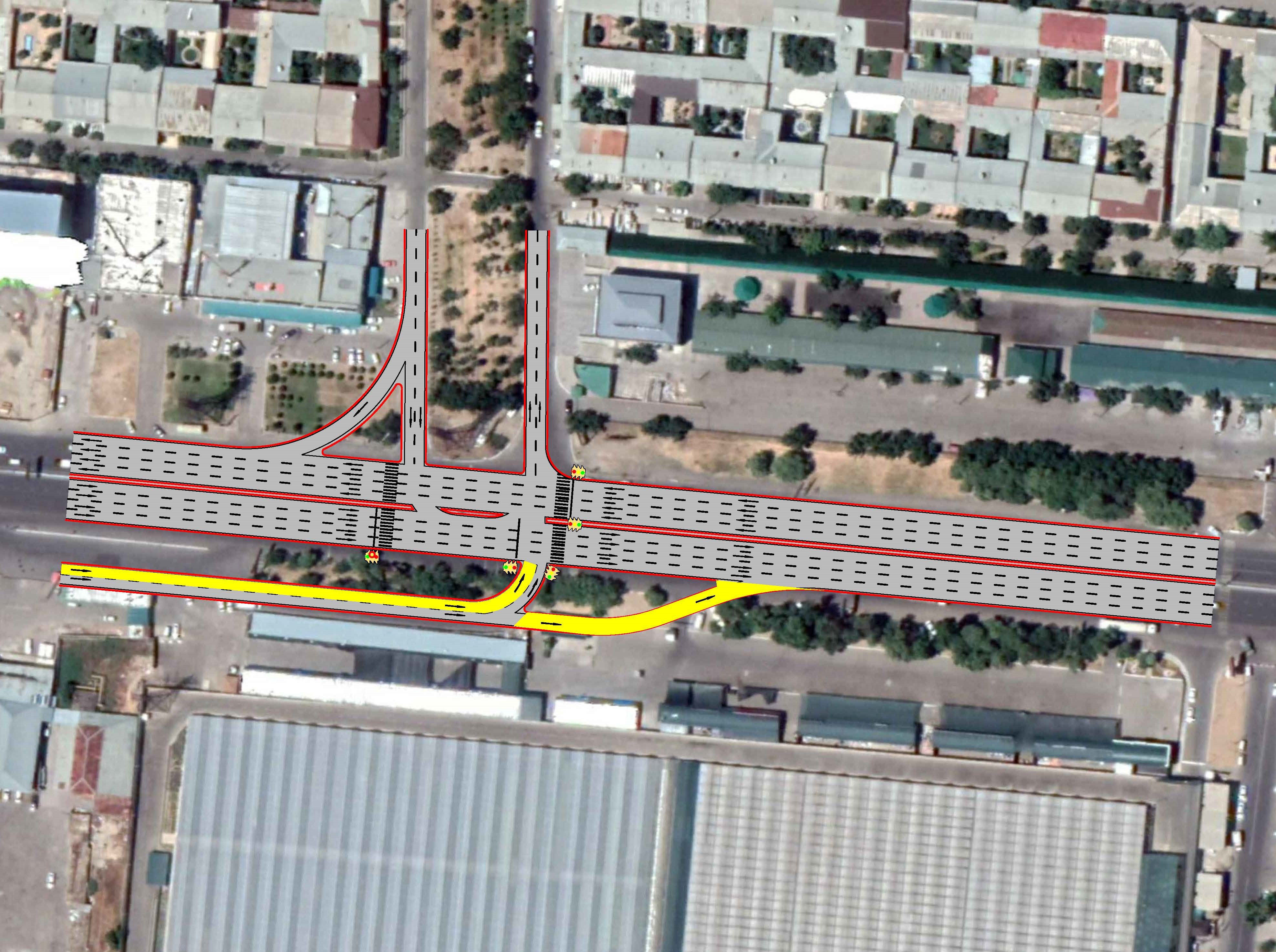 1. Чоштепа - Янги Сергели кўчалари кесишмасида ўтказувчанликни ошириш мақсадида, кесишмани кенгайтириш (параметрларини ўзгартириш);