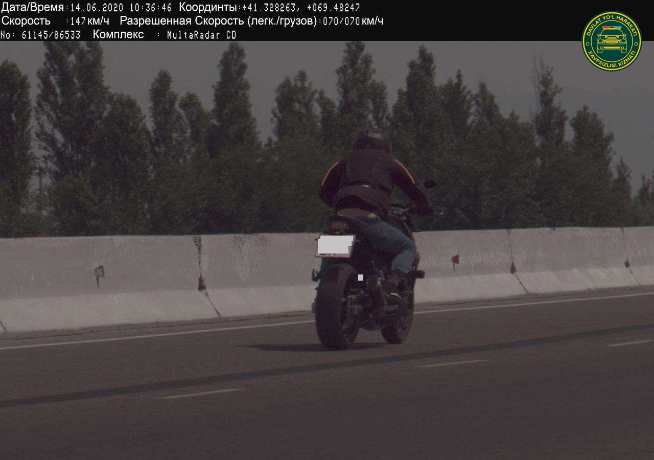Мисол учун, жорий йилнинг 6 август куни Юқоричирчиқ туманидан ўтувчи 4Р12 “Бектемир-Чорбоғ” автомобиль йўлининг 16-километрида Тошкент шаҳри, Шайхонтоҳур туманида истиқомат қилувчи фуқорога тегишли бўлган “HONDA” русумли мотоцикл 70 км/соат тезлик белгиланган жойда 166 км/соат тезлик билан ҳаракатланган.
