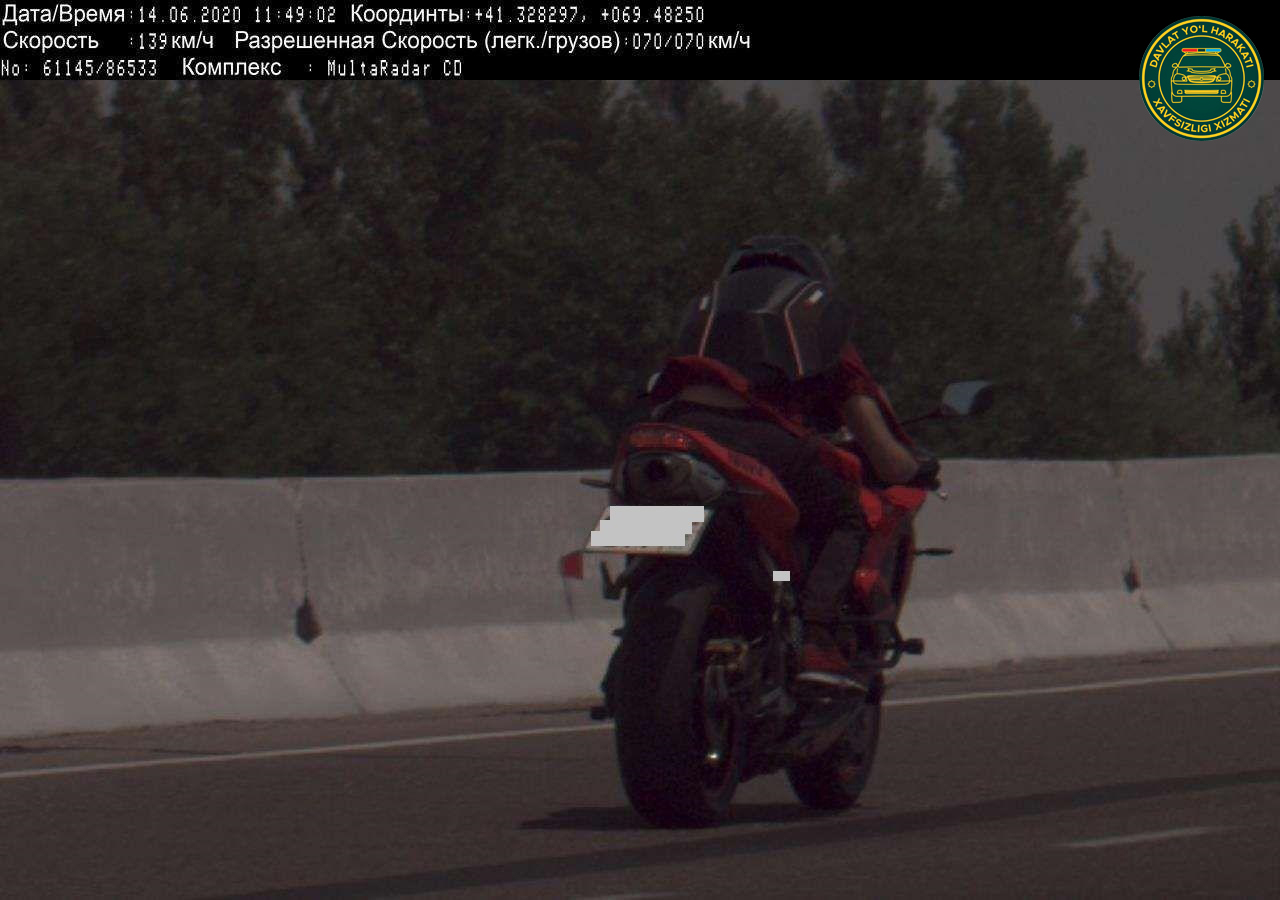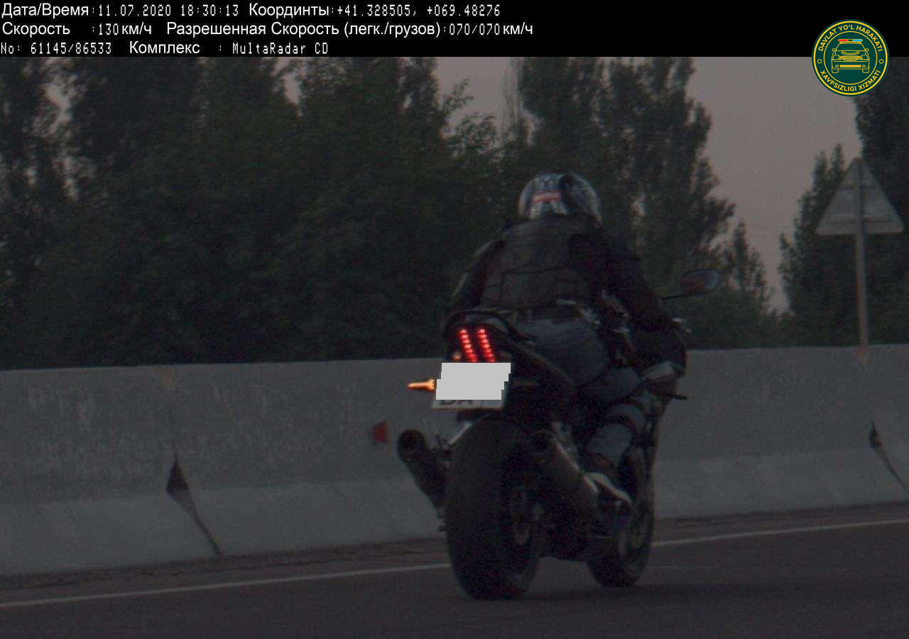 Жорий йилнинг 10 июль куни эса, Юқоричирчиқ туманидан ўтувчи 4Р12 “Бектемир-Чорбоғ” автомобиль йўлининг 34-километрида Тошкент шаҳри Олмазор туманида истиқомат қилувчи фуқарога тегишли бўлган “SUZUKI” русумли мотоцикл 147 км/соат тезлик билан ҳаракатланган. Ушбу мотоцикл эгаларига нисбатан Ўзбекистон Республикаси Маъмурий жавобгарлик тўғрисидаги кодекснинг 1283-моддаси 3-қисмига биноан базавий ҳисоблаш миқдорининг 9 баравари миқдорида жарималар белгиланиб, жарима қарорлари яшаш манзилларига жўнатилган.