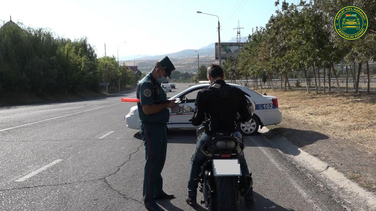 Тадбир давомида 20 дан ортиқ мотоцикллар тўхтатилди. Улардан 7 нафарига нисбатан белгиланган тартибда маъмурий баённомалар расмийлаштирилди. Ҳайдовчиларнинг тегишли ҳужжатлари бўлмаганлиги сабаб 5 та мотоцикл вақтинчалик жарима майдонига киритилди. Бундан ташқари 3 та ҳолатда мотоциклларнинг давлат рақам белгиларини яшириб олганлиги аниқланди.