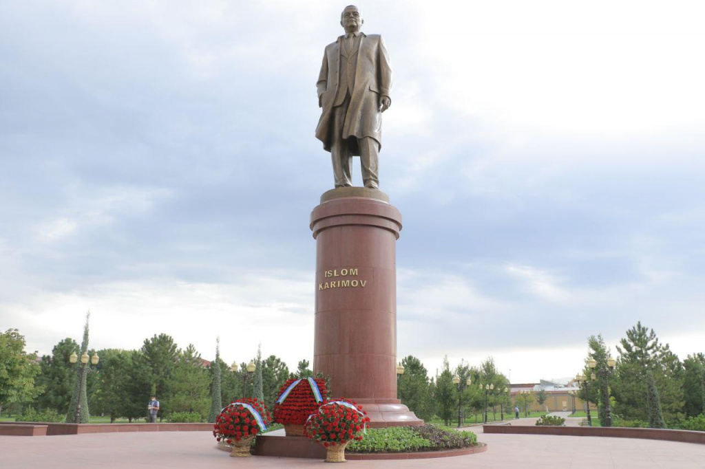 Қарши шаҳрида бўлиб ўтган хотирлаш тадбирида ҳам Ислом Каримов ҳайкали пойига гулчамбарлар қўйилди.