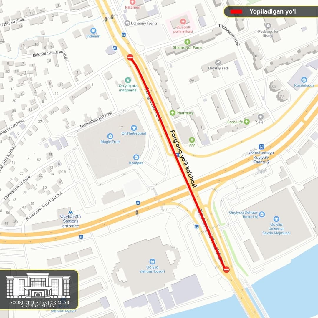 Тошкентда Фарғона йўли ва Бектемир шоҳ кўчасини боғловчи кўприк 20 кунга ёпилади
