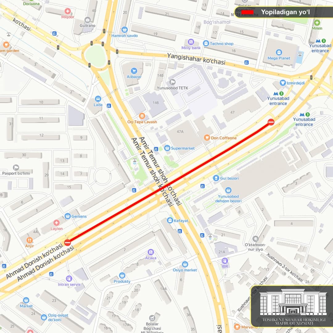 Пойтахтда “Юнусобод” метро бекатидан 7-сон Шаҳар клиник шифохонаси йўналишида таъмирлаш са...