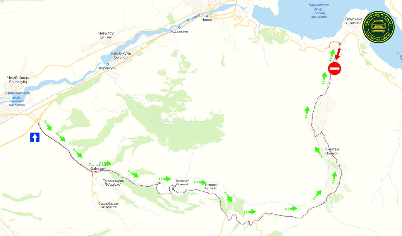 Бўстонлиқ тоғли ҳудудларидаги дам олиш масканига олиб борувчи йўлнинг маълум қисмида авто...